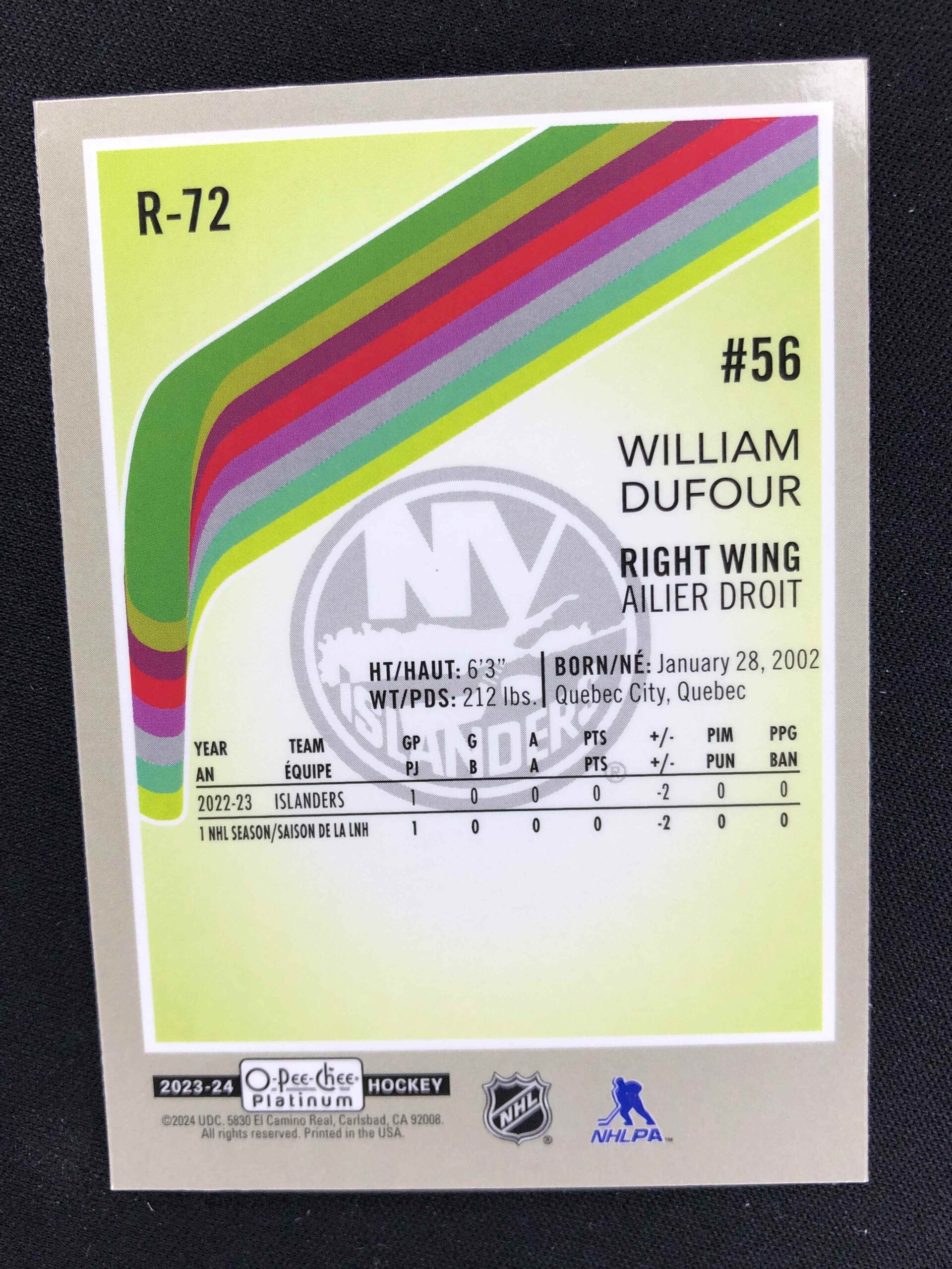 Sběratelská karta 2023/2024 Upper Deck OPC Platinum Retro Marquee Rookie R-72 William Dufour Paralel