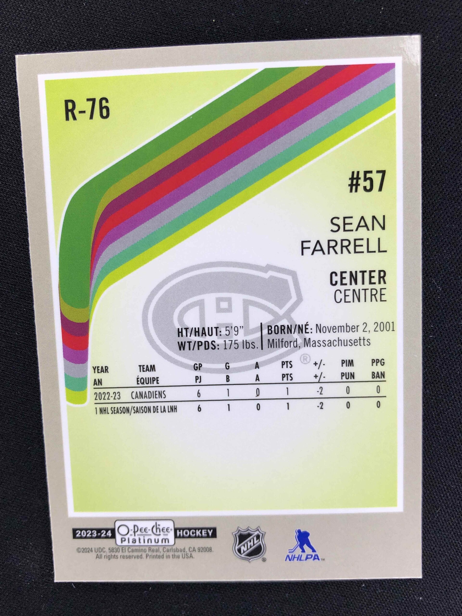 2023/2024 Upper Deck OPC Platinum Retro Marquee Rookie R-76 Sean Farrell Paralel