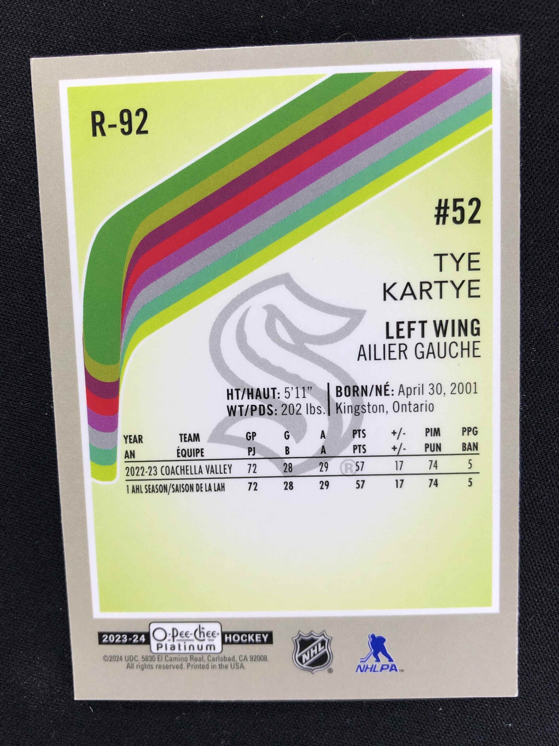 Sběratelská karta 2023/2024 Upper Deck OPC Platinum Retro Marquee Rookie R-92 Tye Kartye Paralel