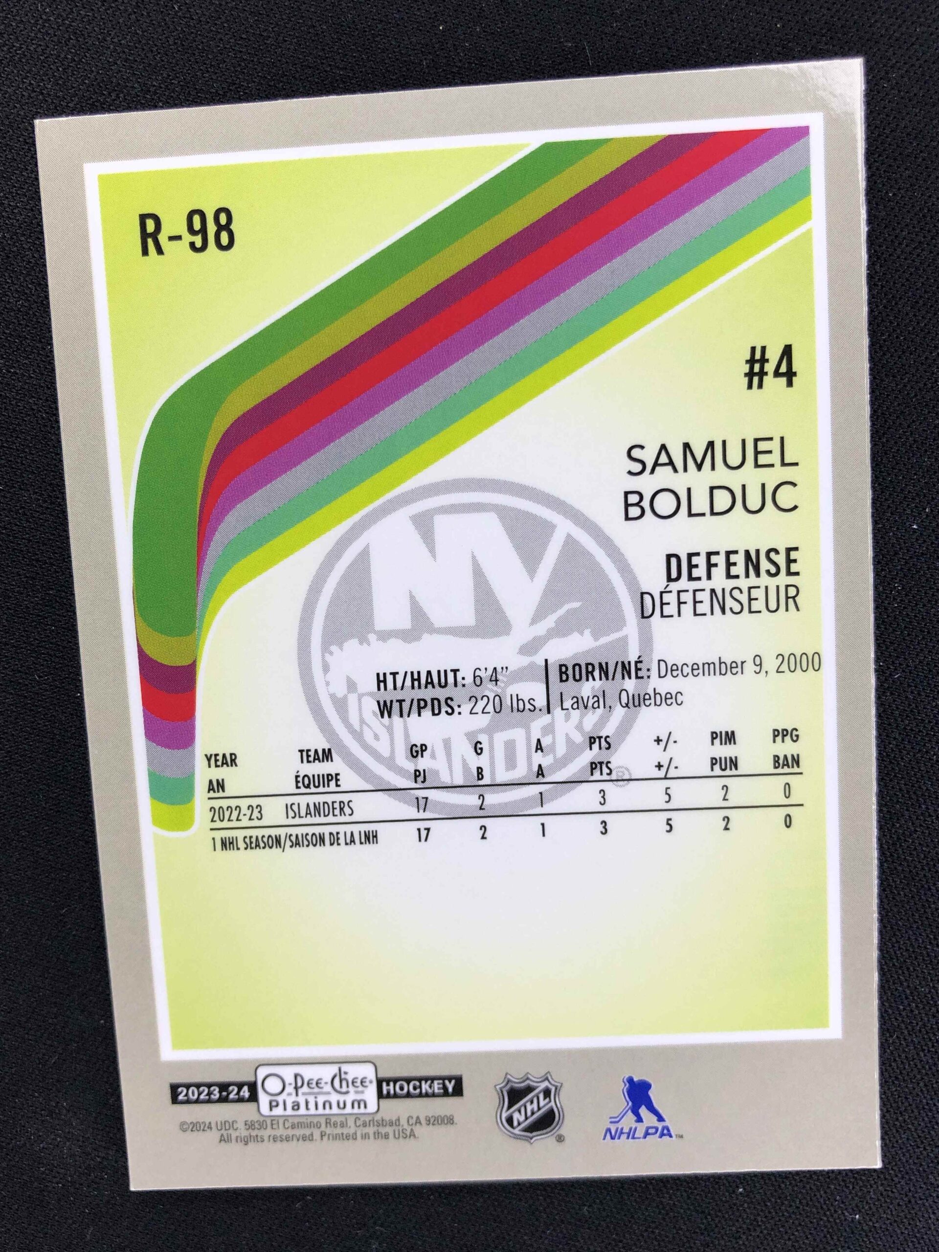 Sběratelská karta 2023/2024 Upper Deck OPC Platinum Retro Marquee Rookie R-98 Samuel Bolduc Paralel