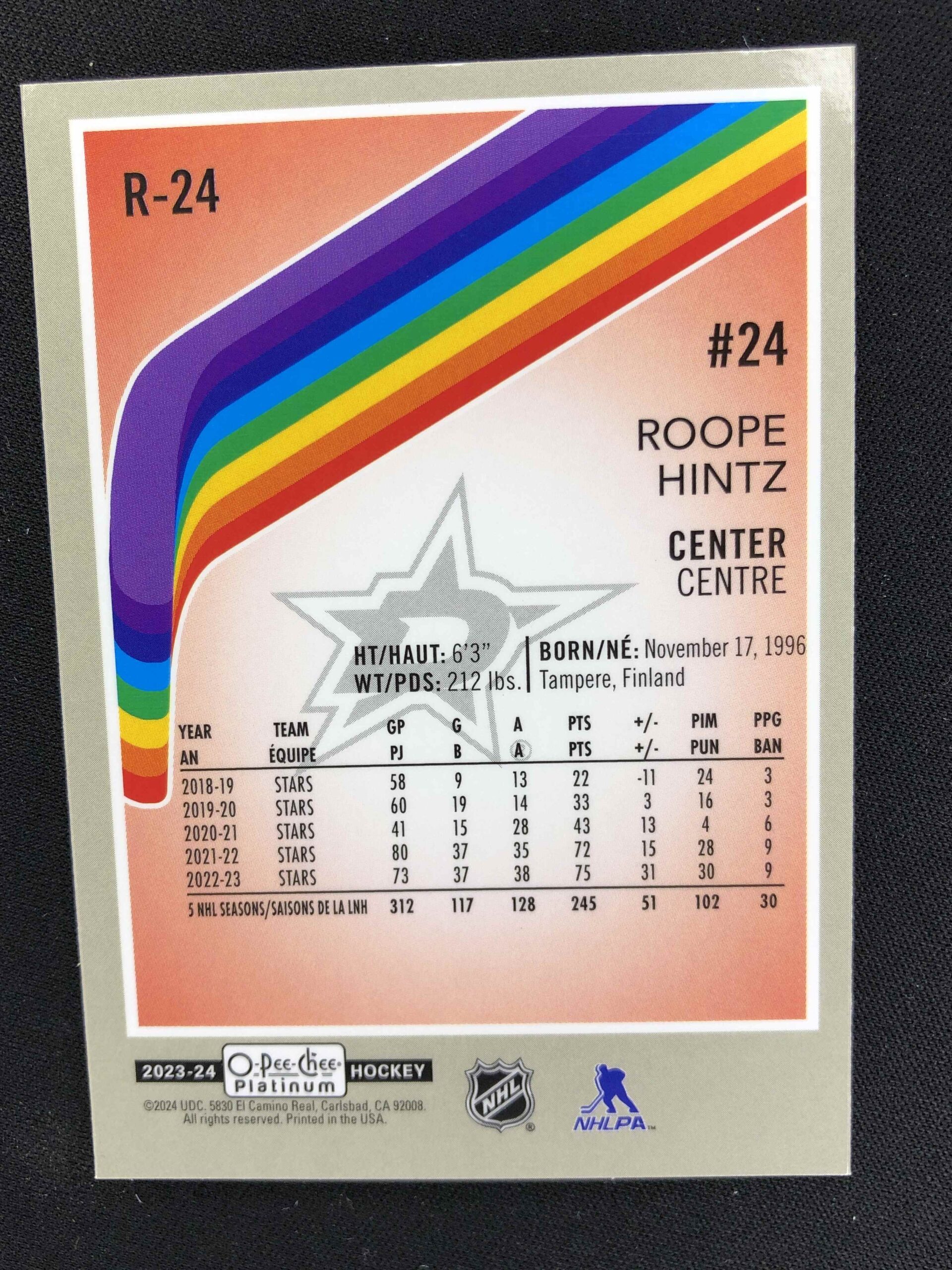 Sběratelská karta 2023/2024 Upper Deck OPC Platinum Retro R-24 Roope Hintz Paralel