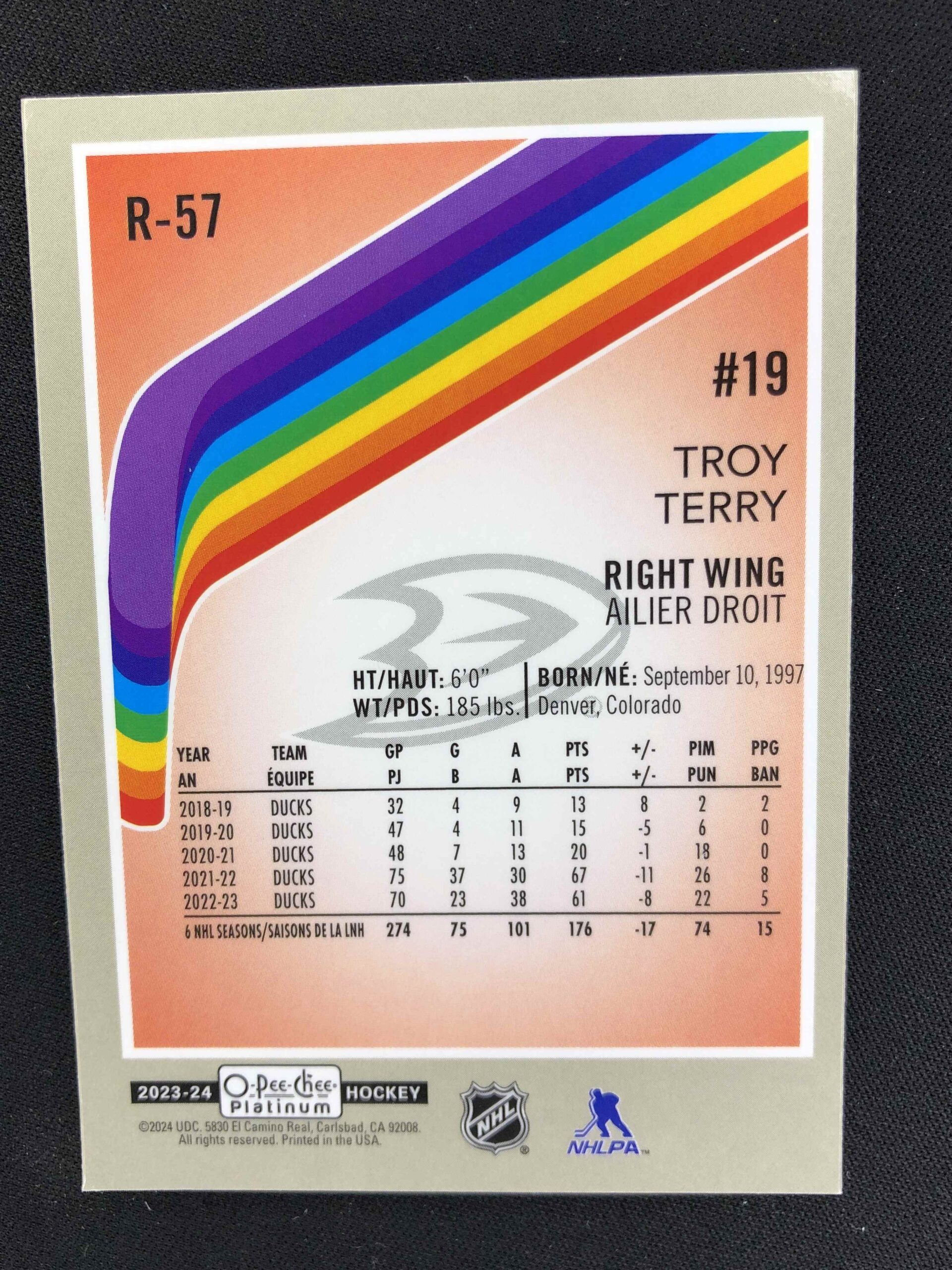 Sběratelská karta 2023/2024 Upper Deck OPC Platinum Retro R-57 Troy Terry Paralel