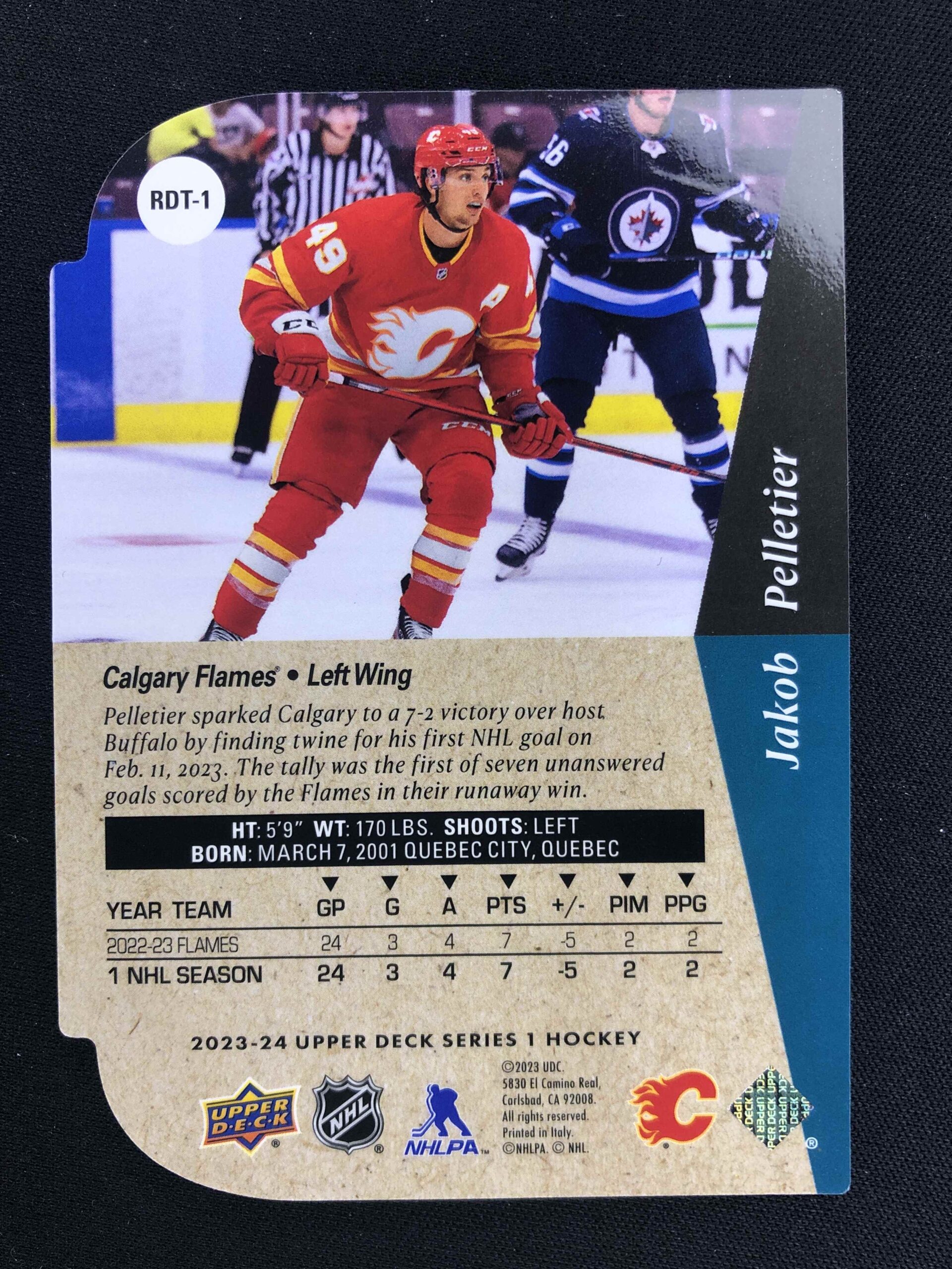 Sběratelská karta 2023/2024 Upper Deck Series 1 94/95 Rookie Tribute Die-Cuts Red RDT-1 Jakob Pelletier Inzert