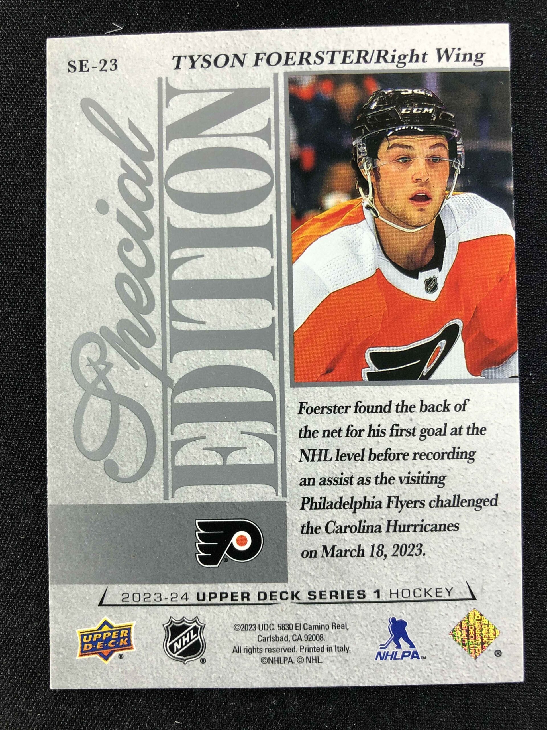 Sběratelská karta 2023/2024 Upper Deck Series 1 Special Edition SE-23 Tyson Foerster Inzert