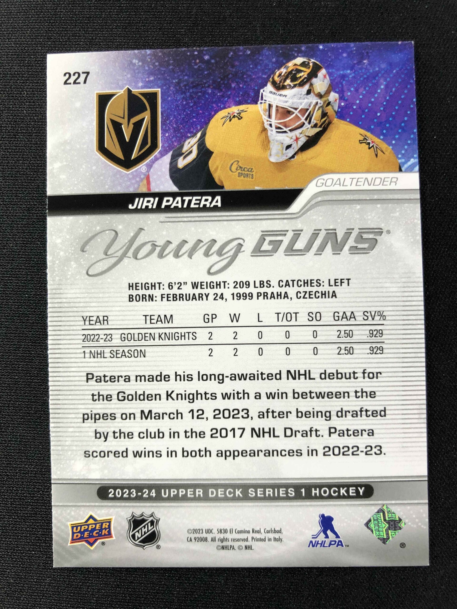 Sběratelská karta 2023/2024 Upper Deck Series 1 Young Guns Outburst 227 jiri Patera Inzert