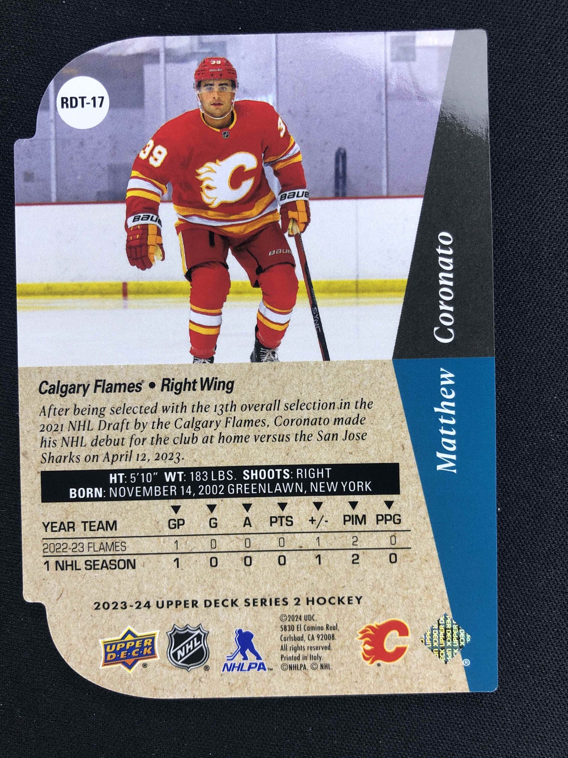 2023/2024 Upper Deck Series 2 94/95 Rookie Tribute Die-Cuts RDT-17 Matt Coronato Inzert