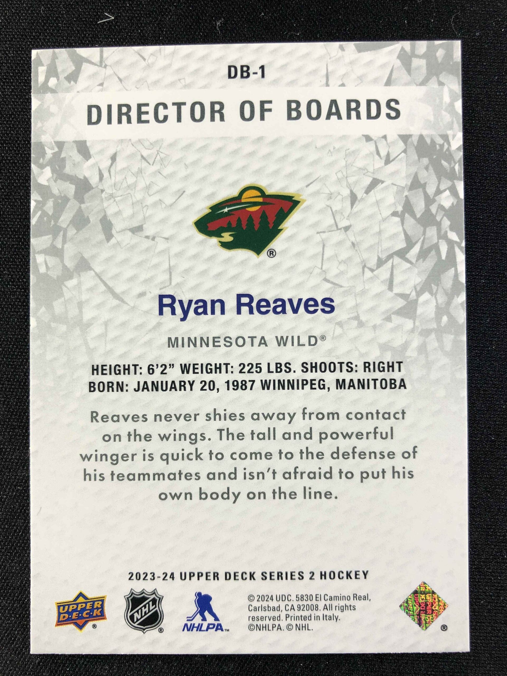 Sběratelská karta 2023/2024 Upper Deck Series 2 Director of Boards DB-1 Ryan Reaves Inzert
