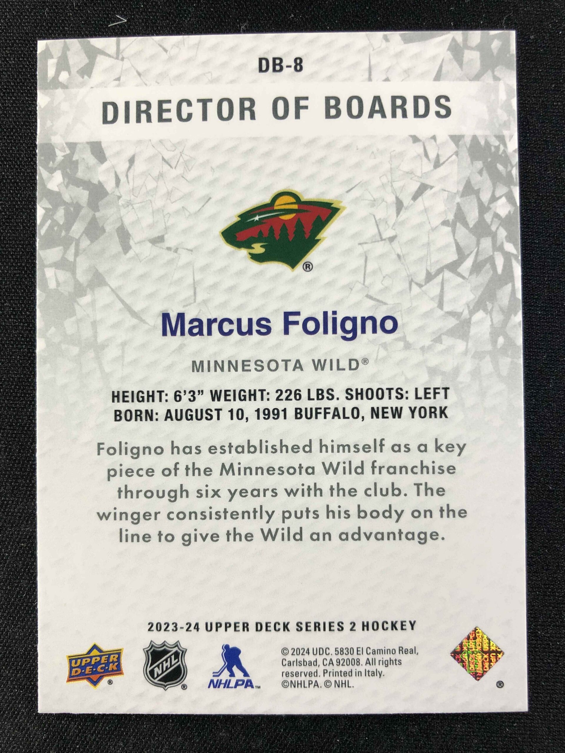 2023/2024 Upper Deck Series 2 Director of Boards DB-8 Marcus Foligno Inzert