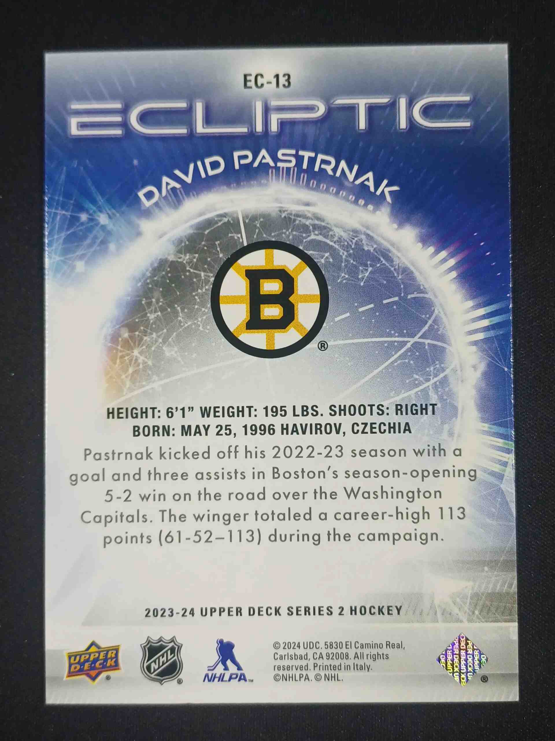 2023/2024 Upper Deck Series 2 Ecliptic EC-13 David Pastrnak Inzert