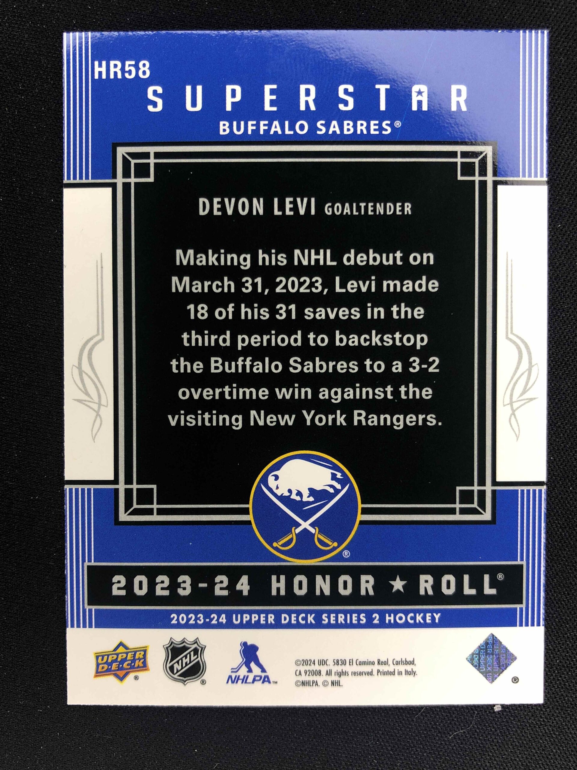 Sběratelská karta 2023/2024 Upper Deck Series 2 Honor Roll HR58 Devon Levi Inzert