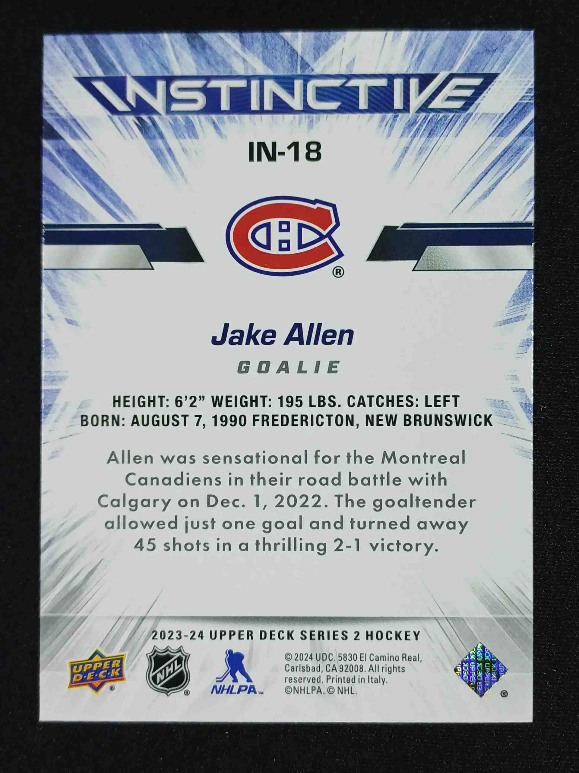 Sběratelská karta 2023/2024 Upper Deck Series 2 Instinctive IN-18 Jake Allen Inzert