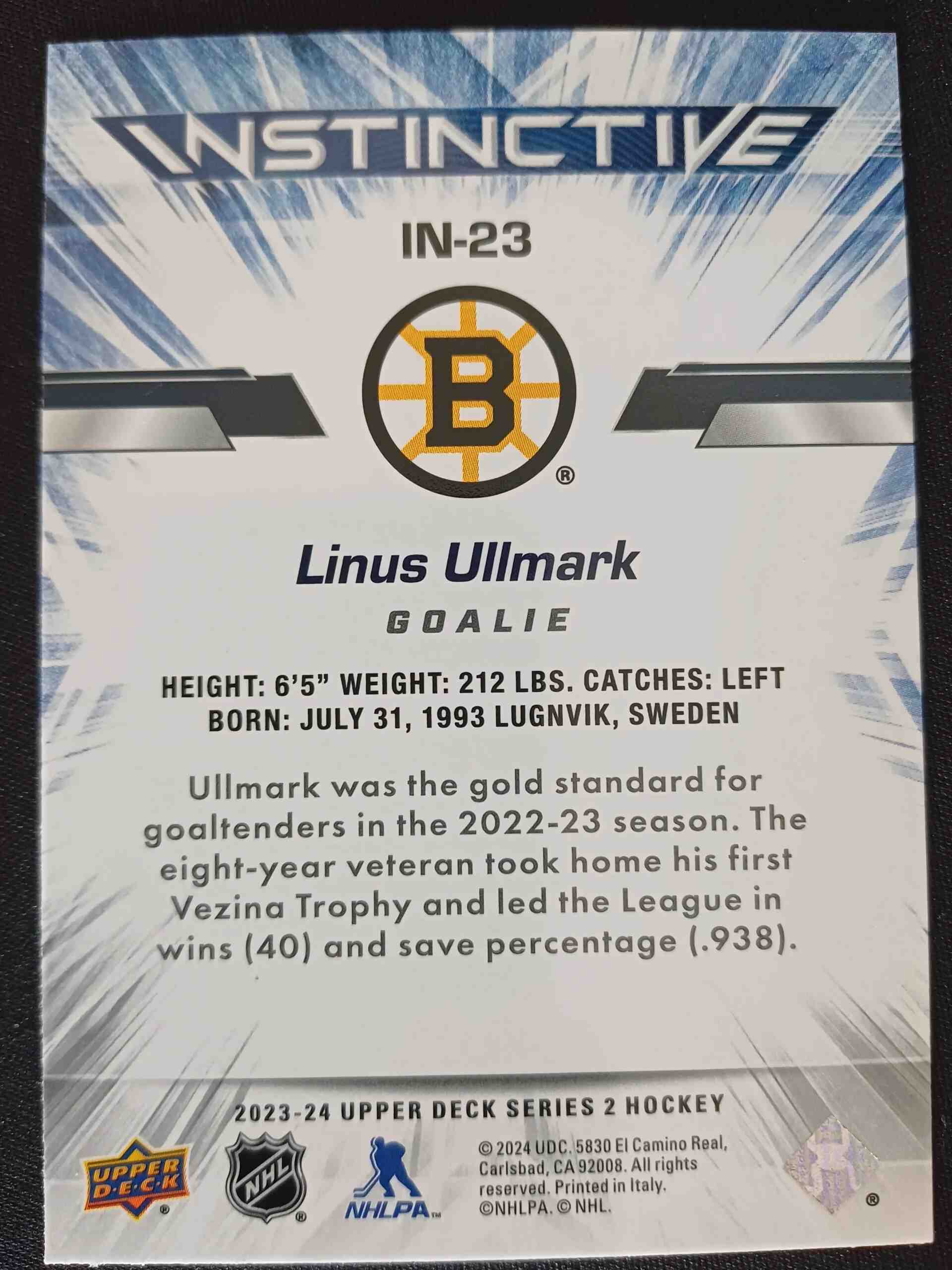 2023/2024 Upper Deck Series 2 Instinctive IN-23 Linus Ullmark Inzert