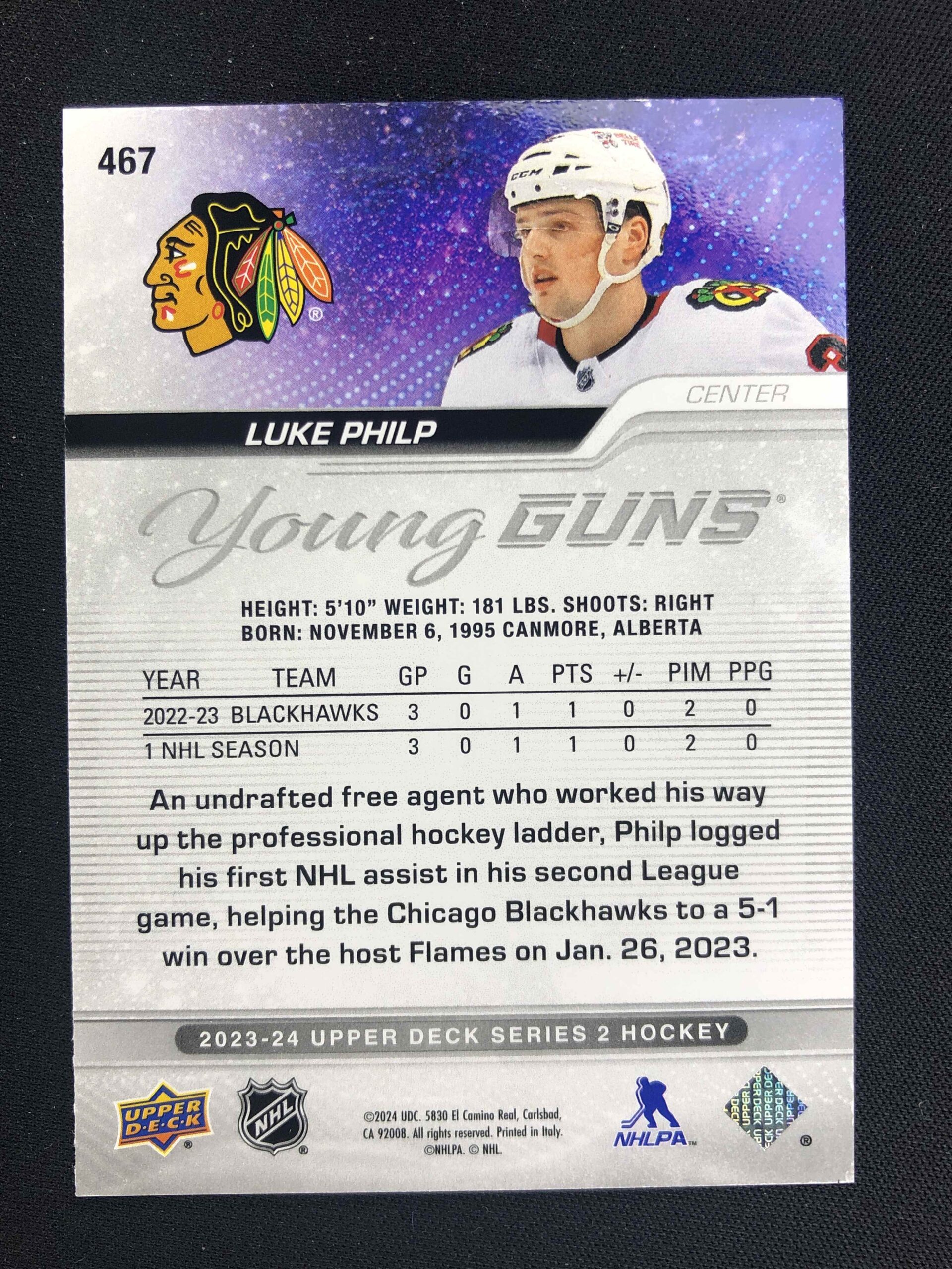 Sběratelská karta 2023/2024 Upper Deck Series 2 Young Guns 467 Luke Philp Inzert