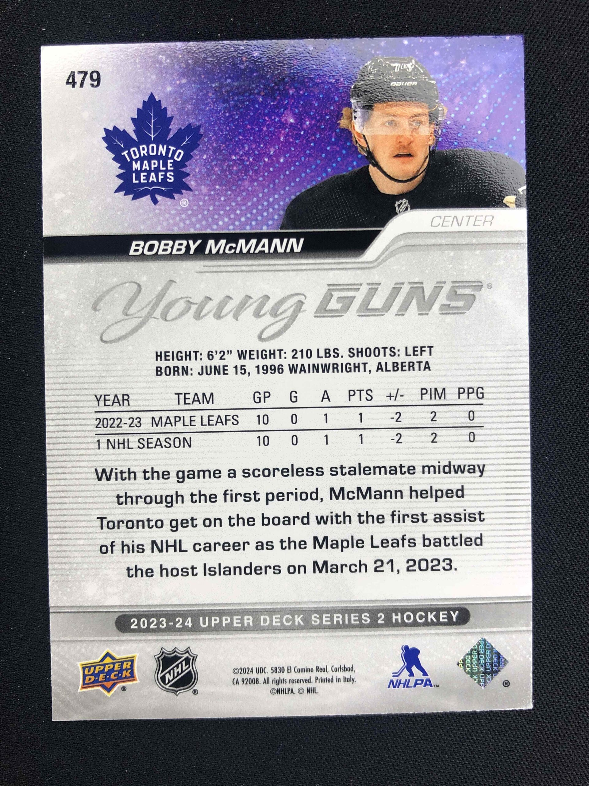 Sběratelská karta 2023/2024 Upper Deck Series 2 Young Guns 479 Bobby McMann Inzert