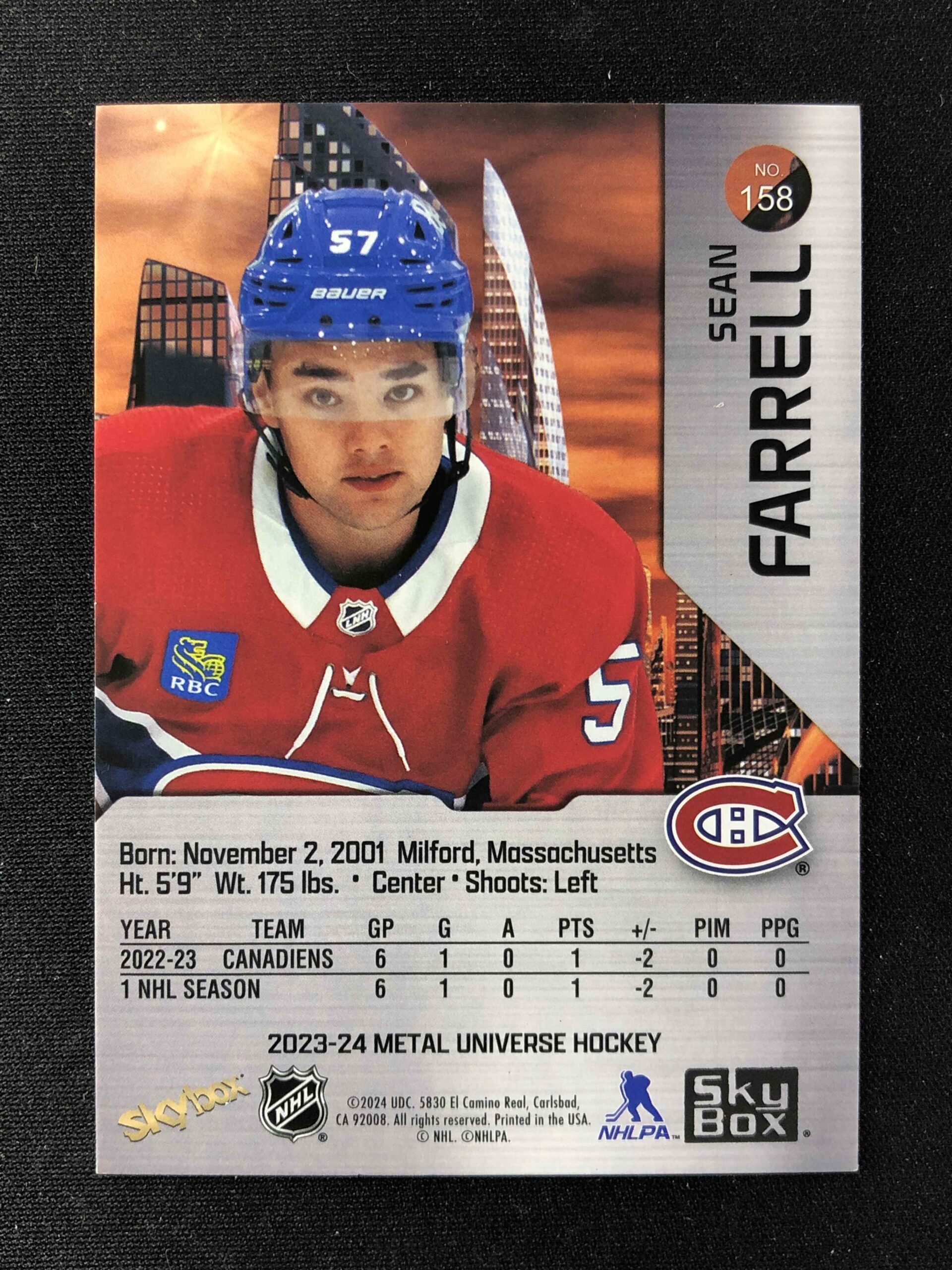 Sběratelská karta 2023/2024 Upper Deck Skybox Metal Universe Base 158 Sean Farrell