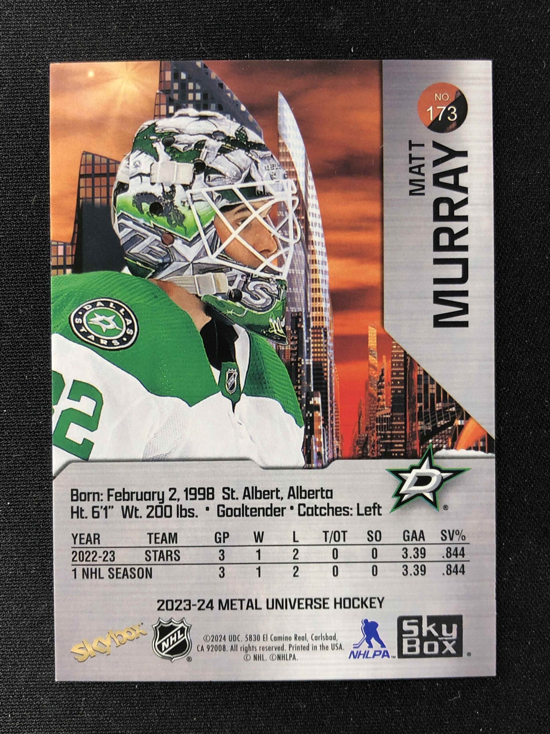Sběratelská karta 2023/2024 Upper Deck Skybox Metal Universe Base 173 Matt Murray