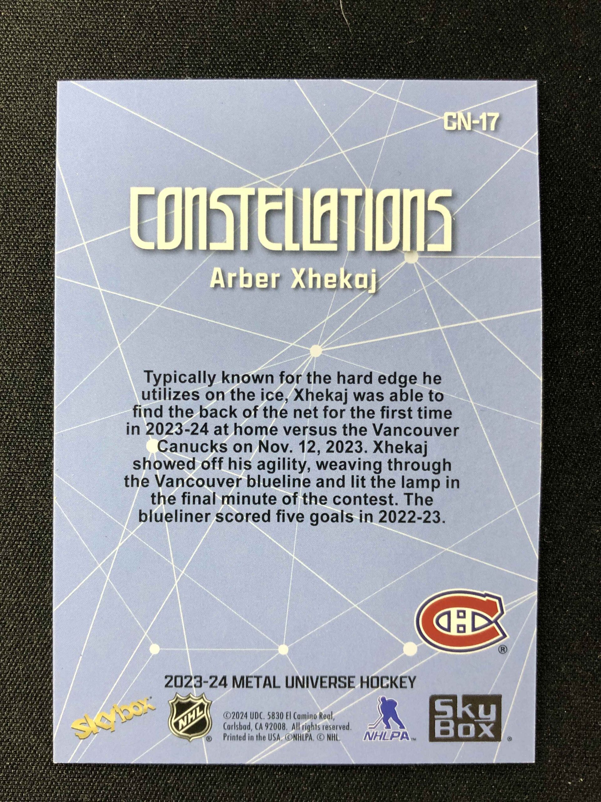 2023/2024 Upper Deck Skybox Metal Universe Constellations CN-17 Arber Xhekaj Inzert
