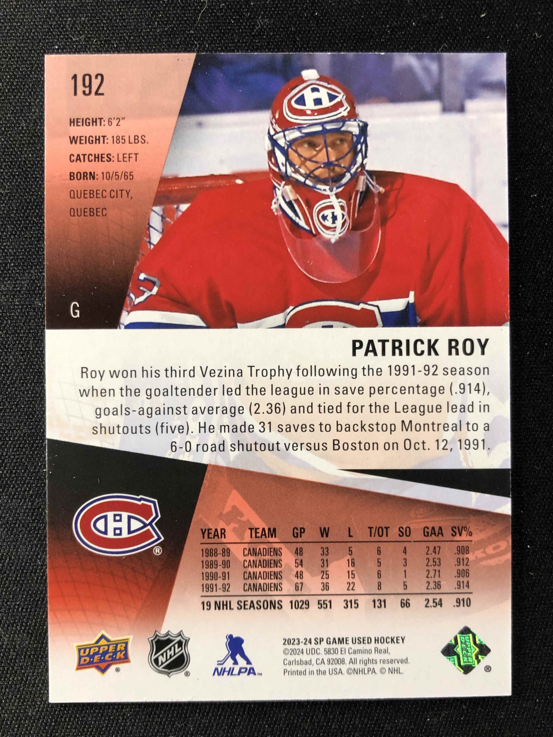 Sběratelská karta 2023/2024 Upper Deck SPGU Base 192 Patrick Roy