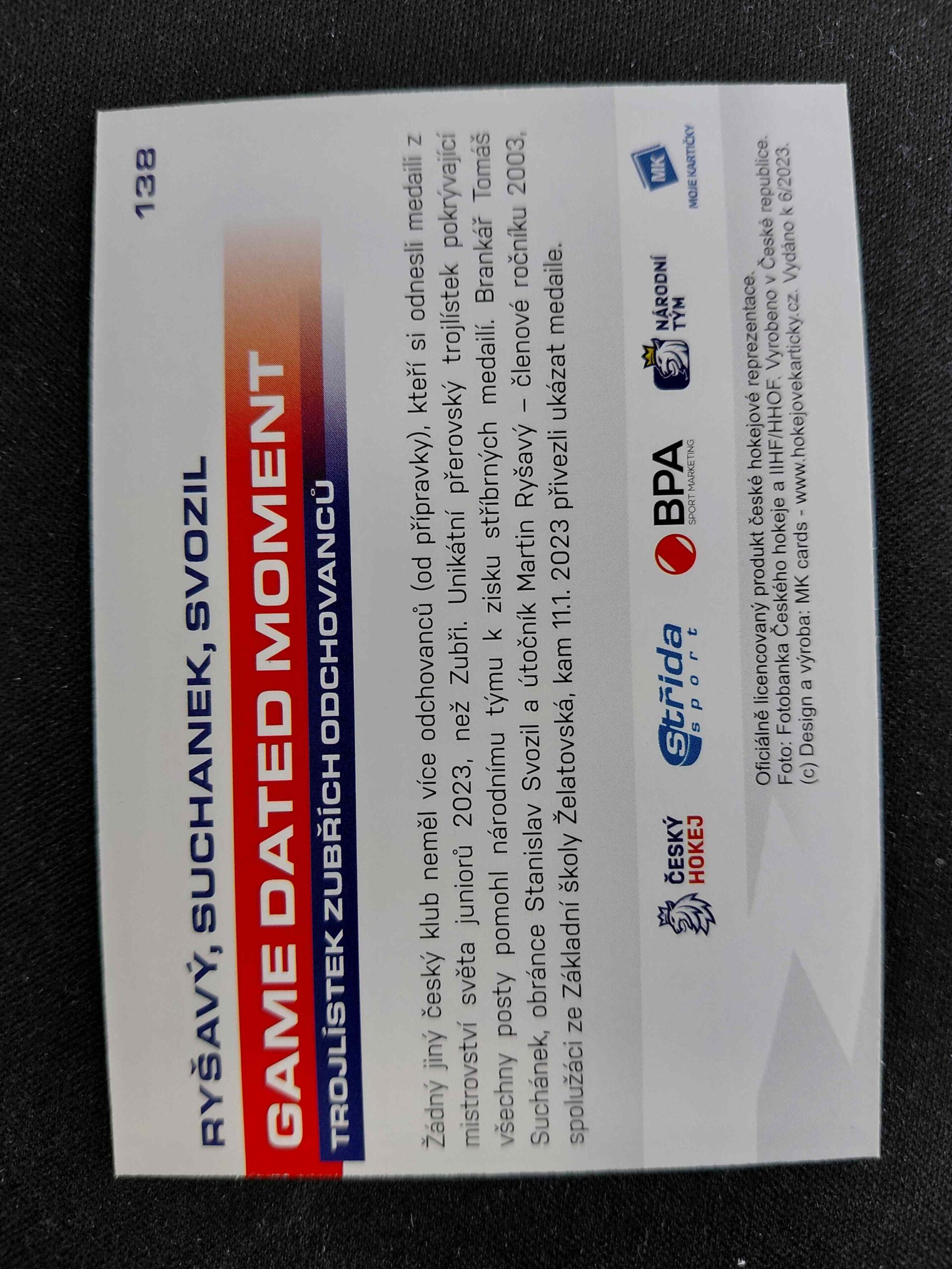 Sběratelská karta 2023 Moje Kartičky Reprezentace Rainbow 138 Ryšavý, Suchánek, Svozil Paralel /40
