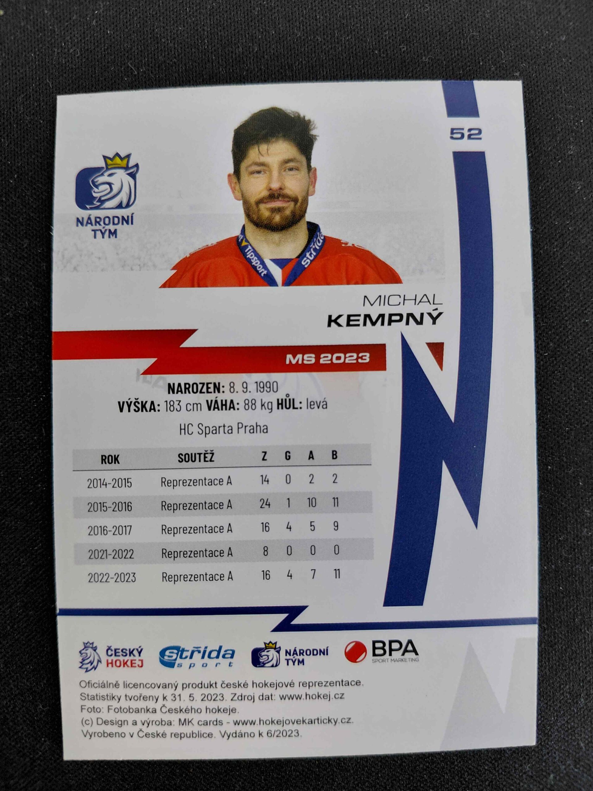 Sběratelská karta 2023 Moje Kartičky Reprezentace Rainbow 52 Michal Kempný Paralel /40