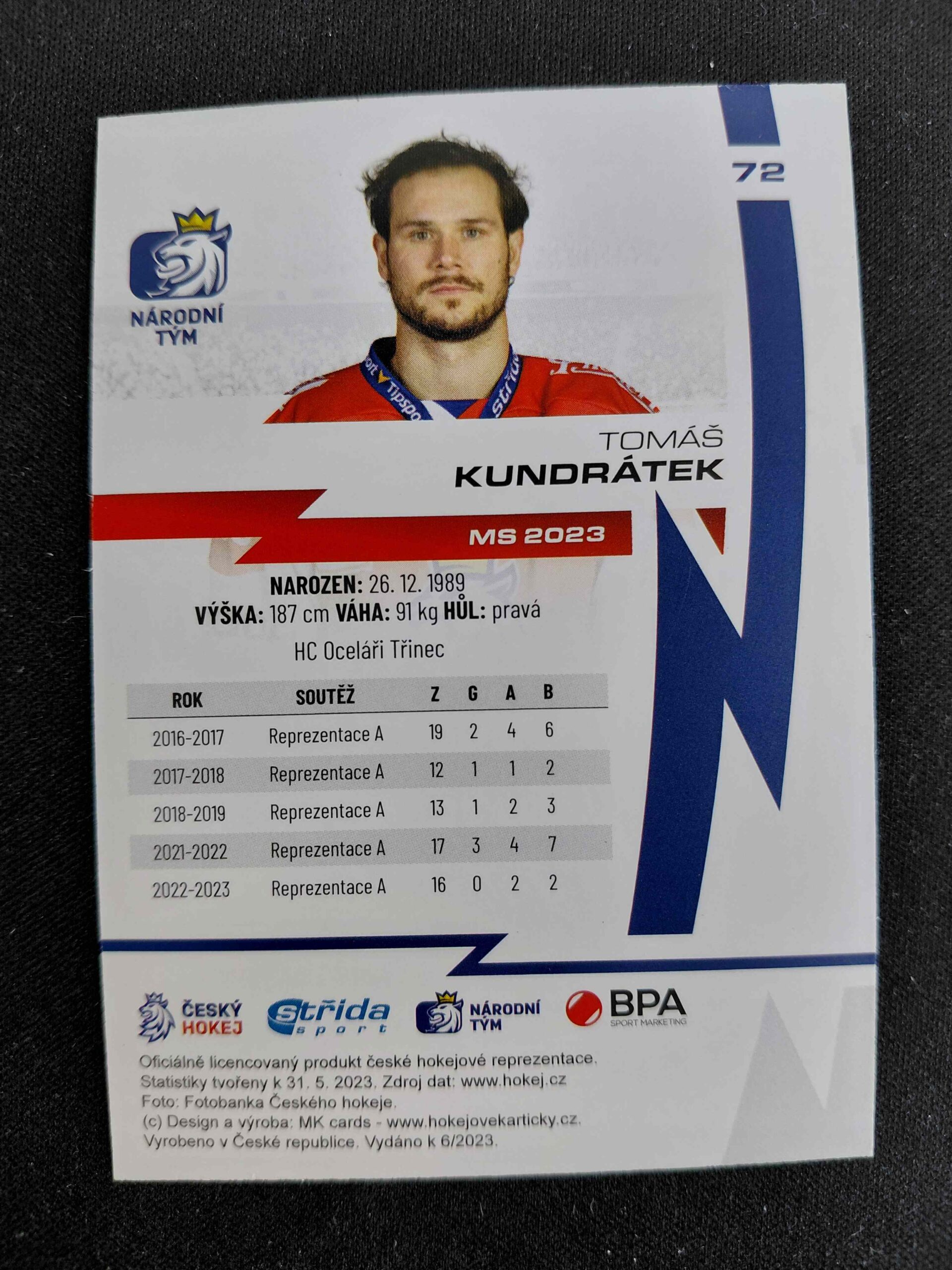Sběratelská karta 2023 Moje Kartičky Reprezentace Rainbow 72 Tomáš Kundrátek Paralel /40