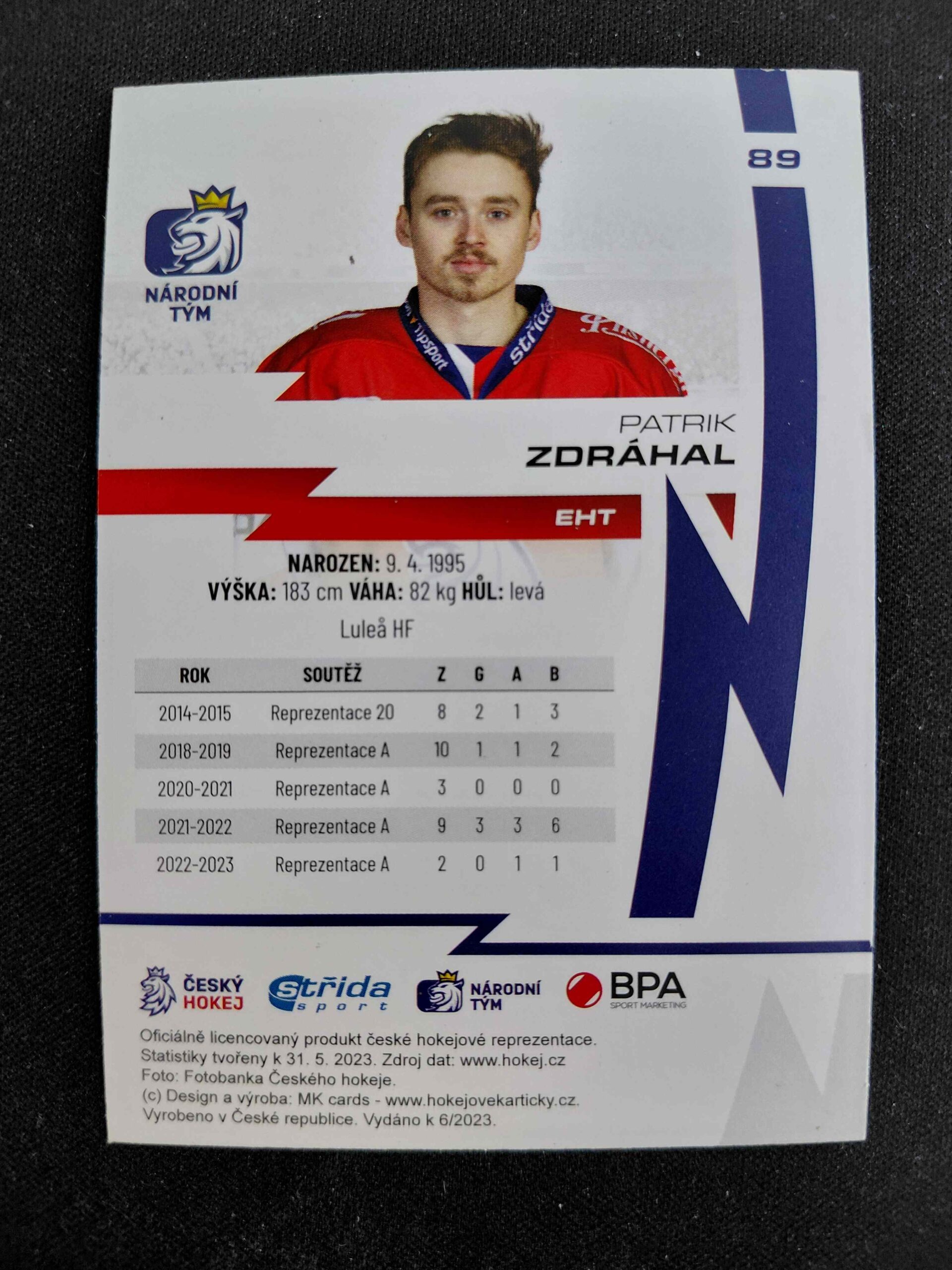 Sběratelská karta 2023 Moje Kartičky Reprezentace Rainbow 89 Patrik Zdráhal Paralel /40