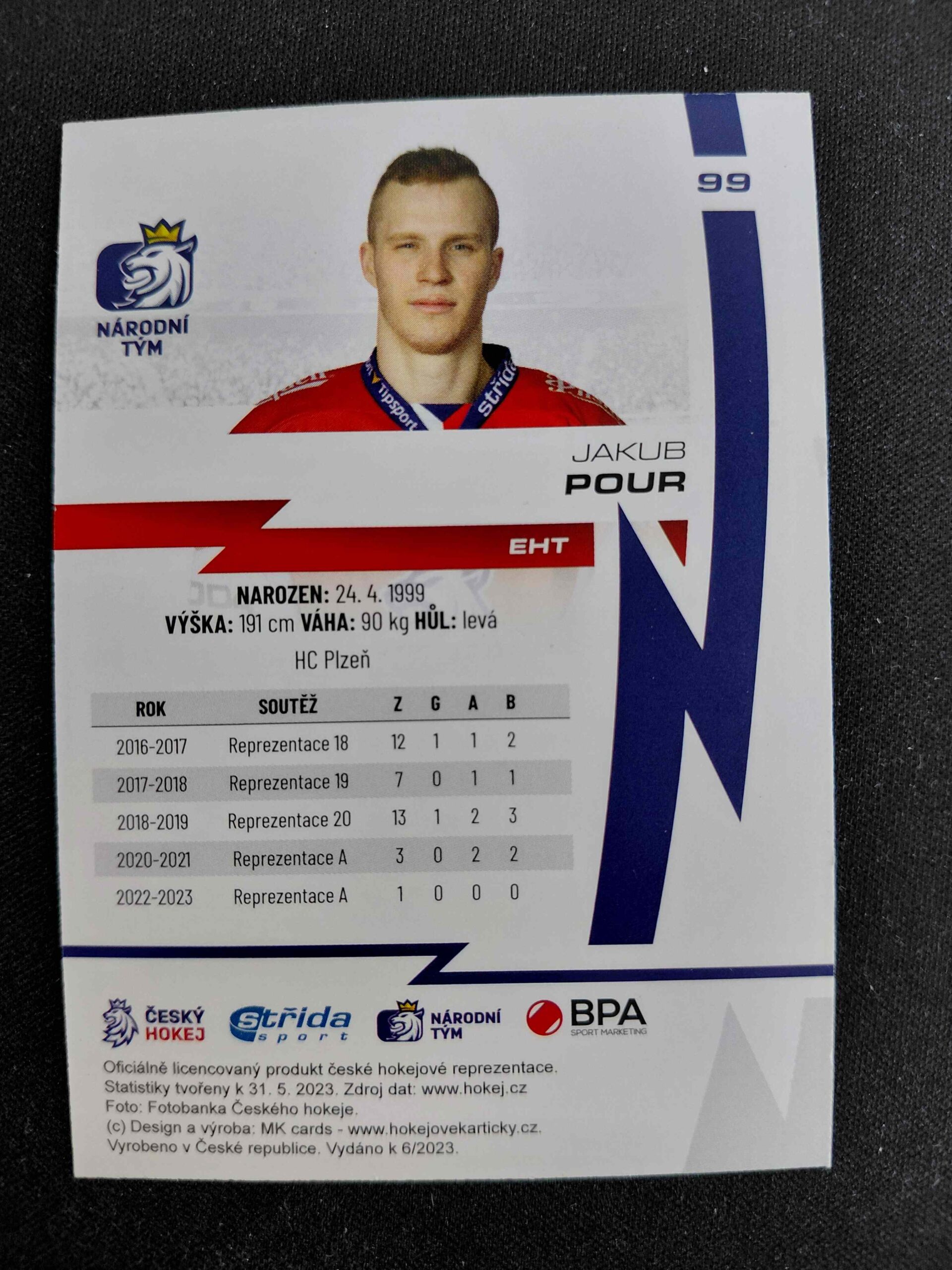 Sběratelská karta 2023 Moje Kartičky Reprezentace Rainbow 99 Jakub Pour Paralel /40