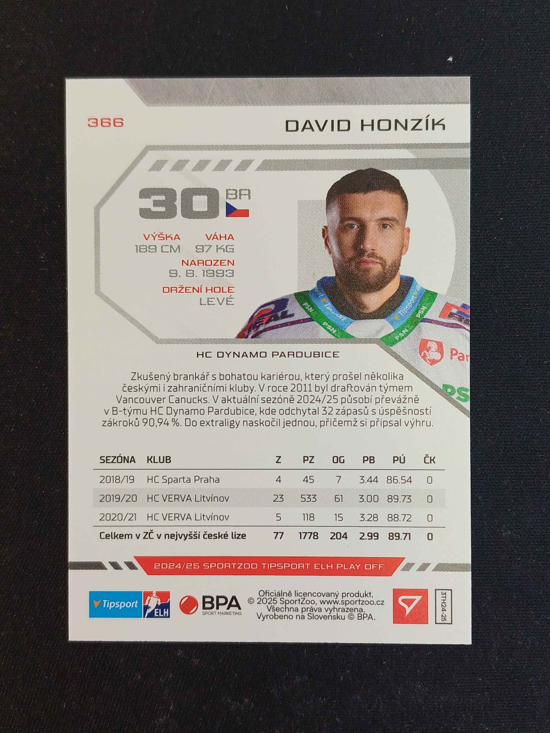 Sběratelská karta 2024/2025 Sportzoo Play Off Base 366 David Honzík