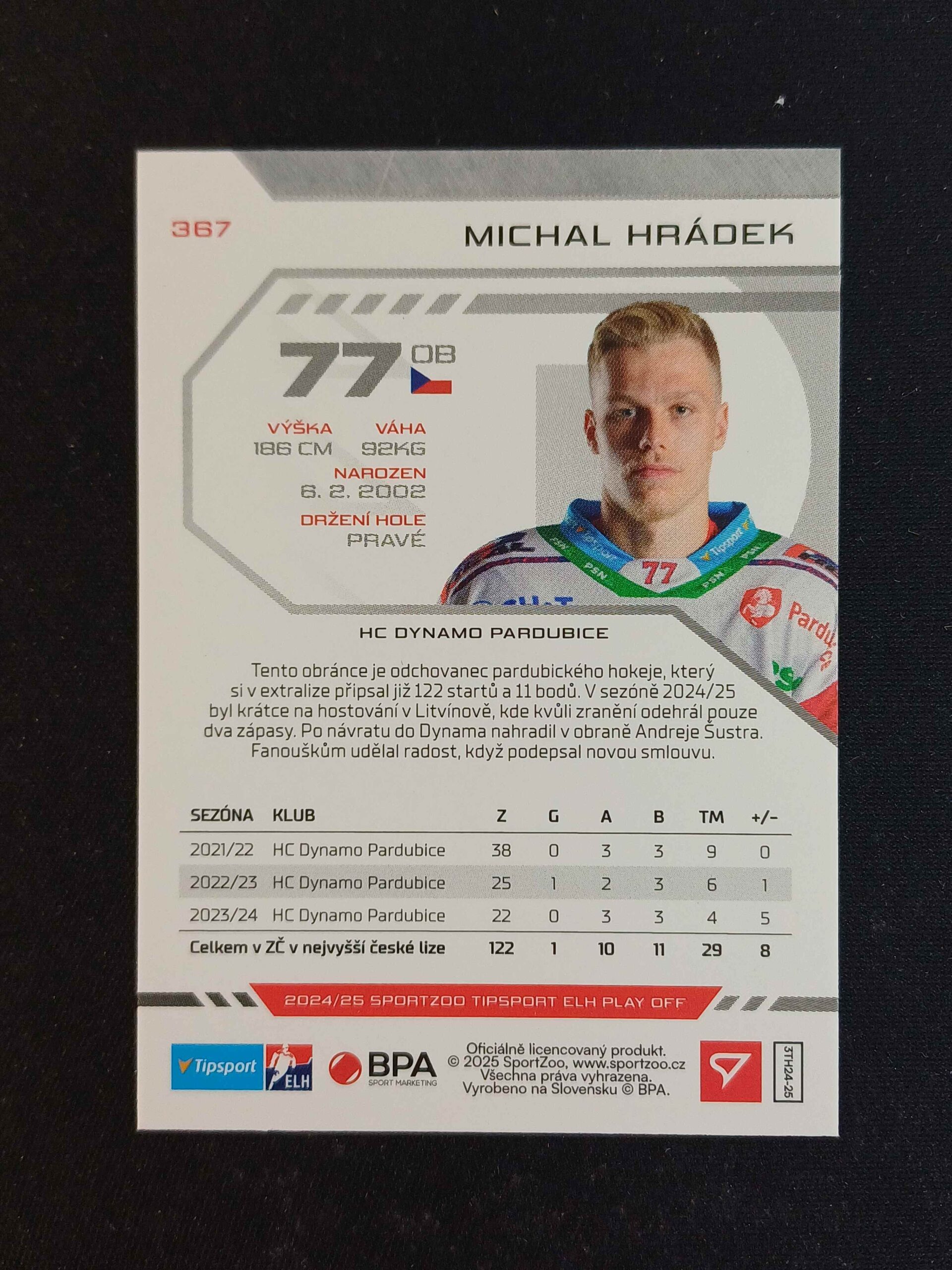 Sběratelská karta 2024/2025 Sportzoo Play Off Base 367 Michal Hrádek