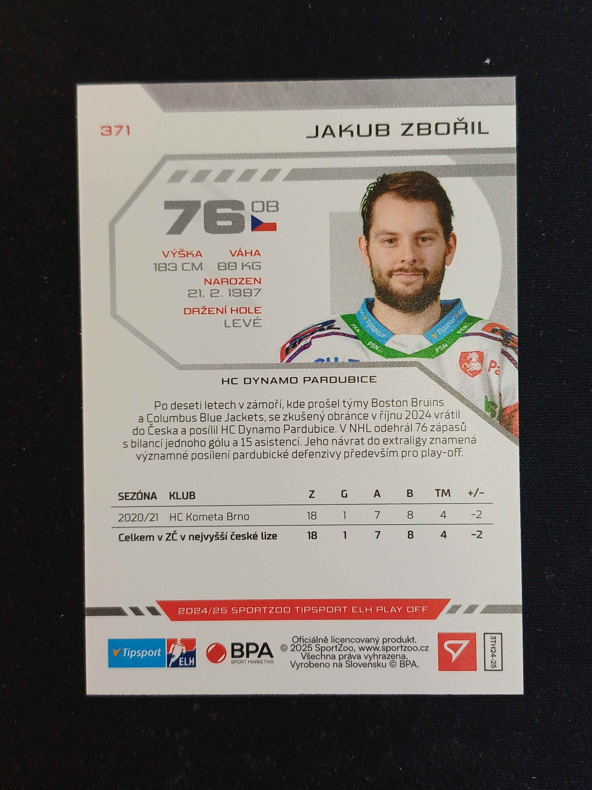 2024/2025 Sportzoo Play Off Base 371 Jakub Zboril