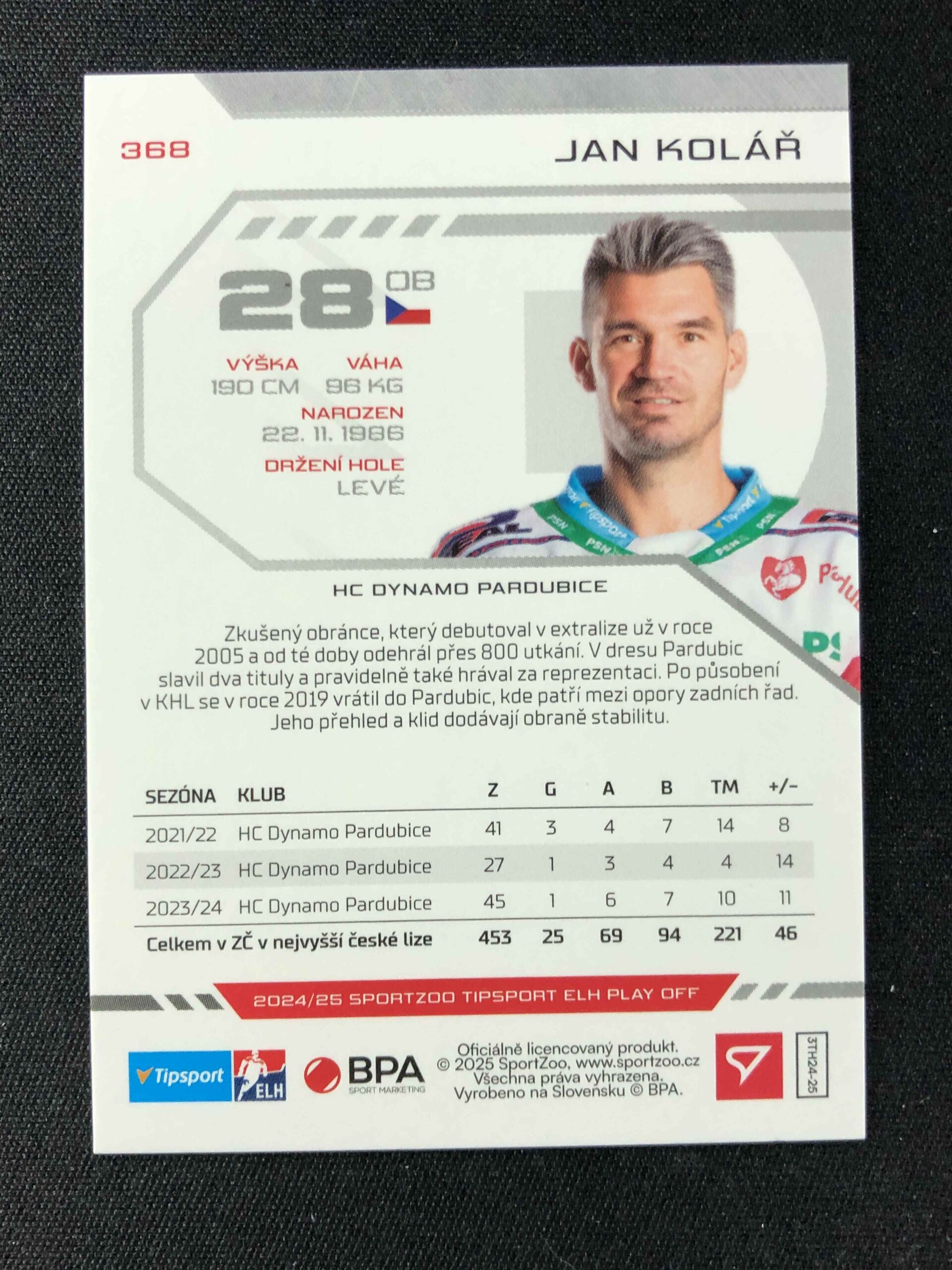 Sběratelská karta 2024/2025 Sportzoo Play Off Green Glitter 368 Jan Kolář Paralel 11/30