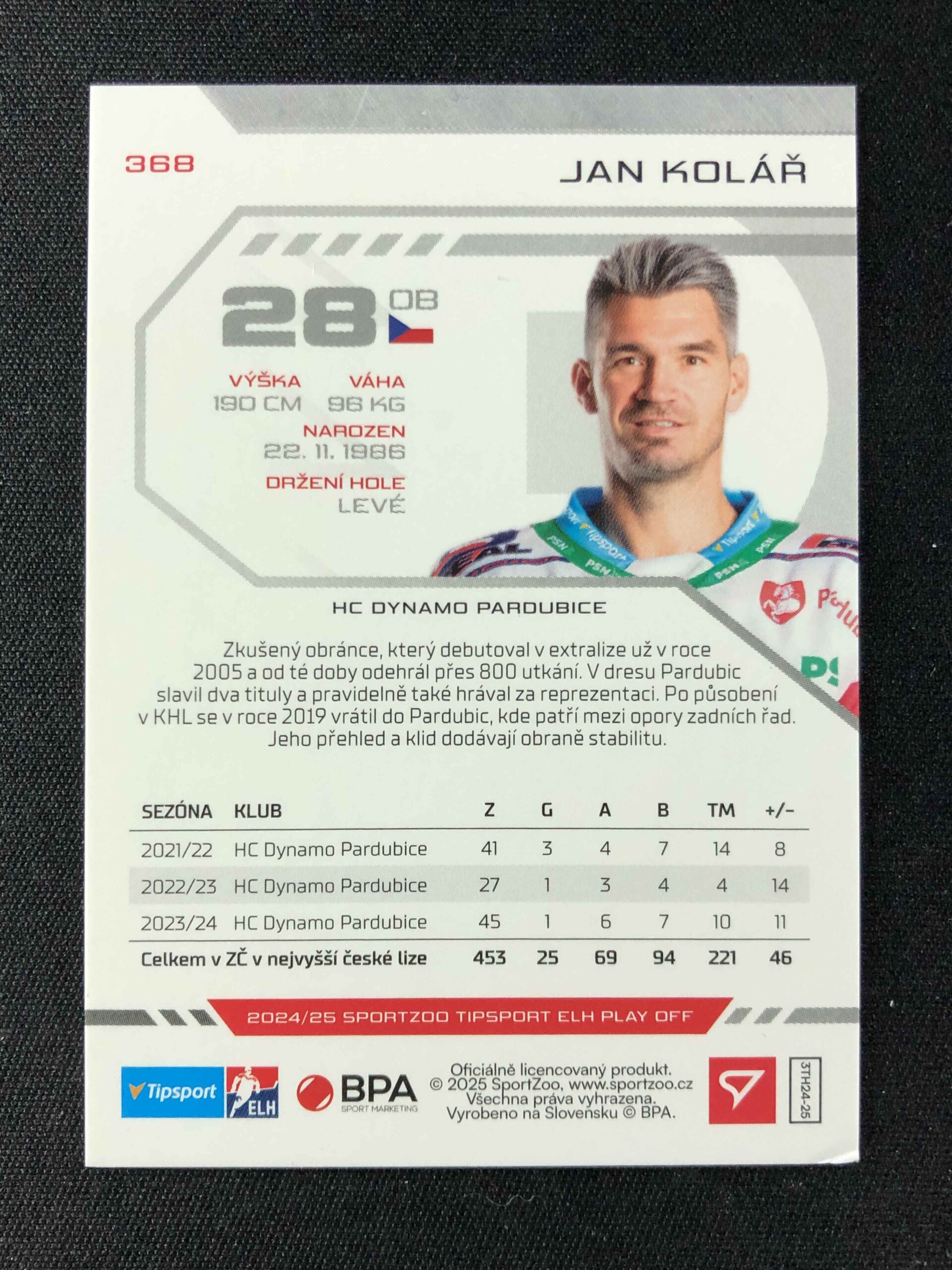 Sběratelská karta 2024/2025 Sportzoo Play Off Green Glitter 368 Jan Kolář Paralel 16/30