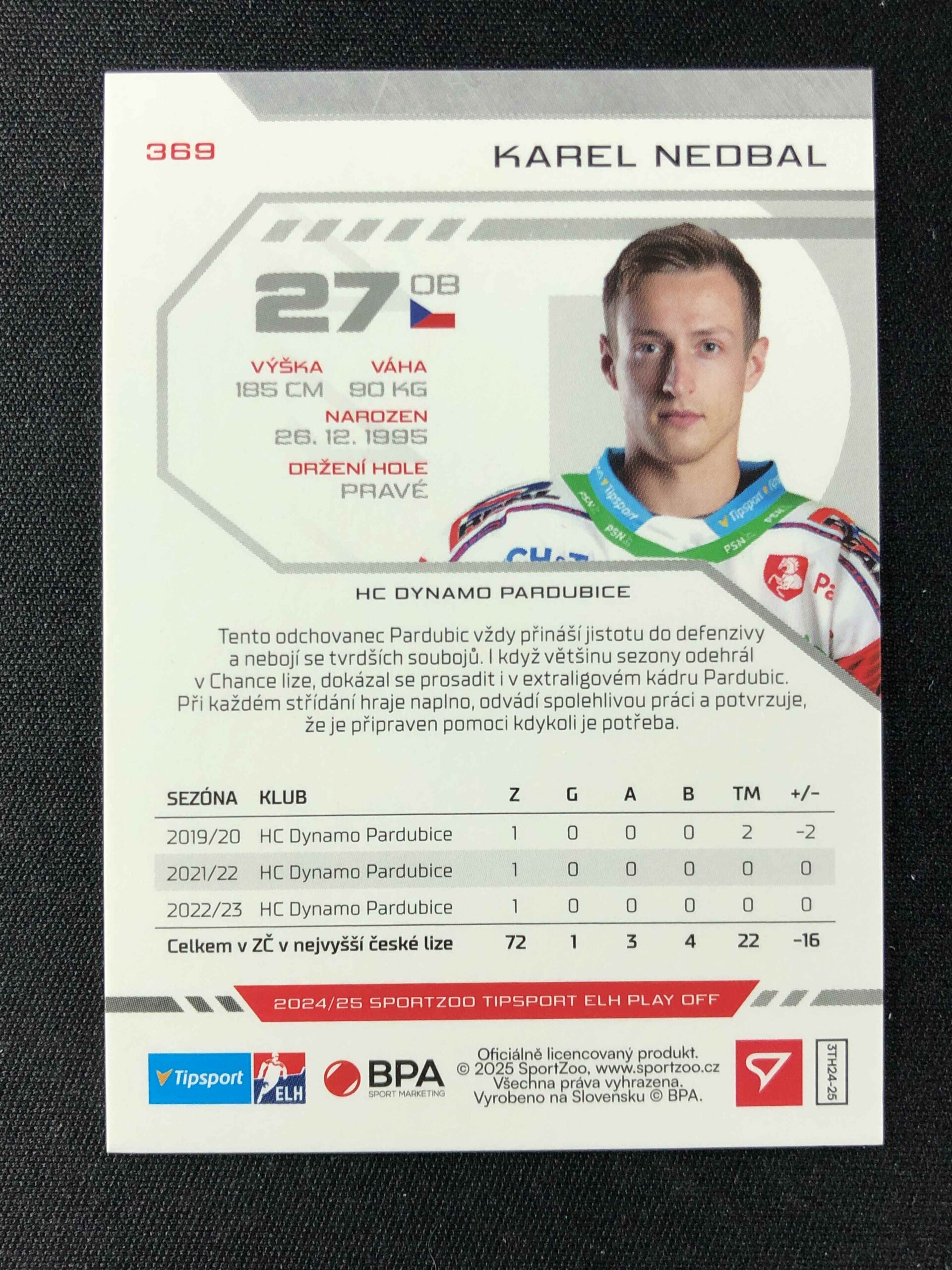 Sběratelská karta 2024/2025 Sportzoo Play Off Green Glitter 369 Karel Nedbal Paralel 25/30