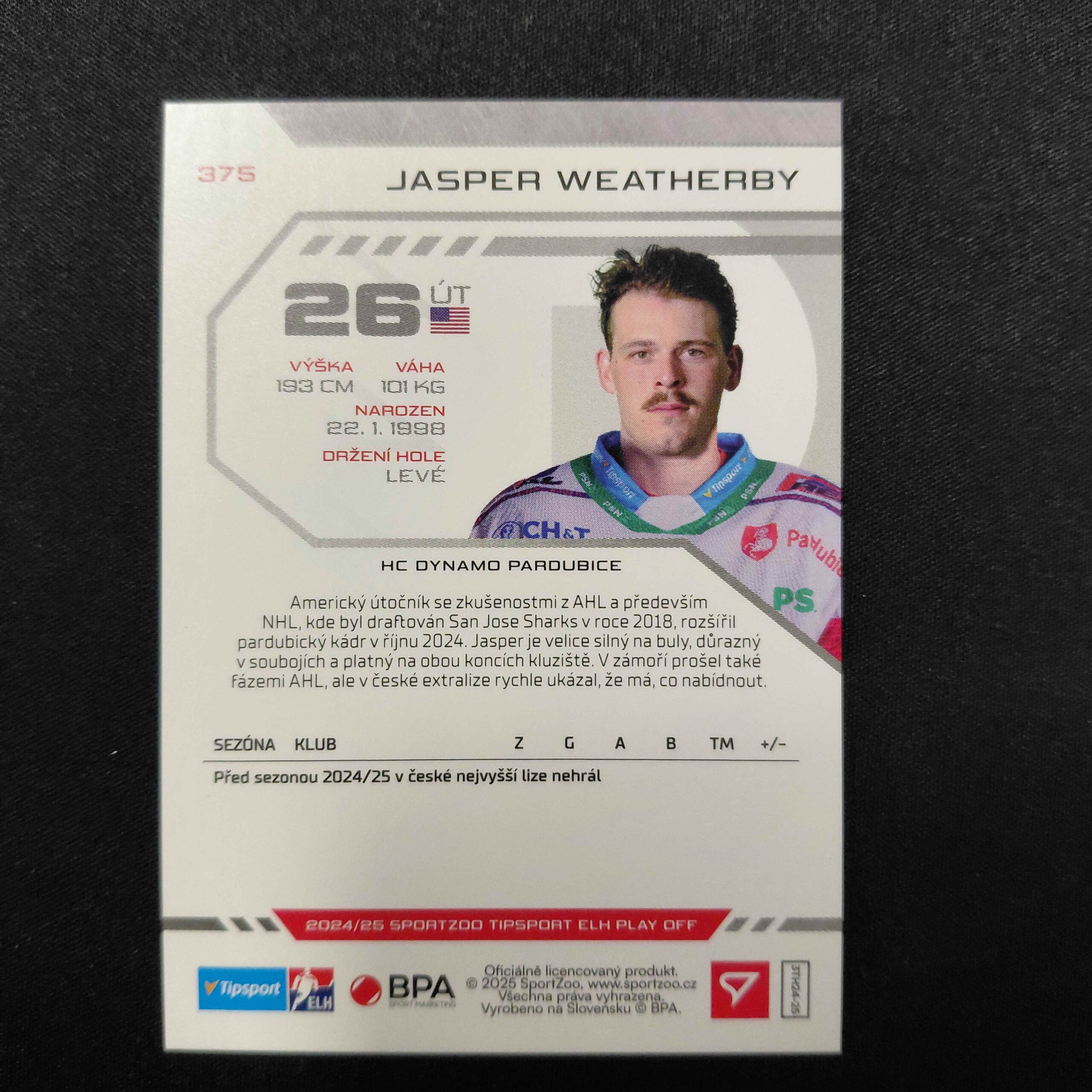 Sběratelská karta 2024/2025 Sportzoo Play Off Green Glitter 375 Jasper Weatherby Paralel 15/30