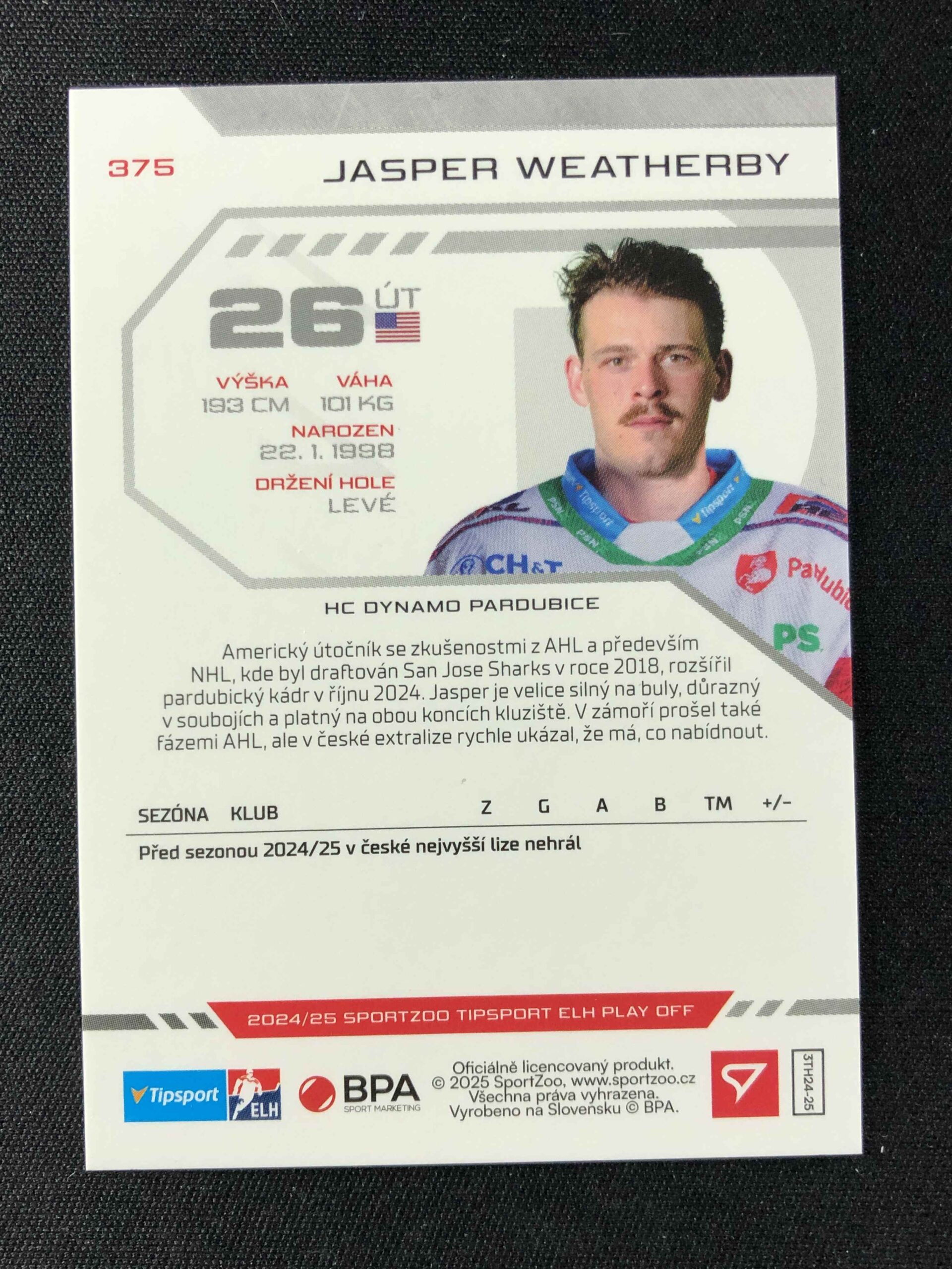 Sběratelská karta 2024/2025 Sportzoo Play Off Green Glitter 375 Jasper Weatherby Paralel 16/30
