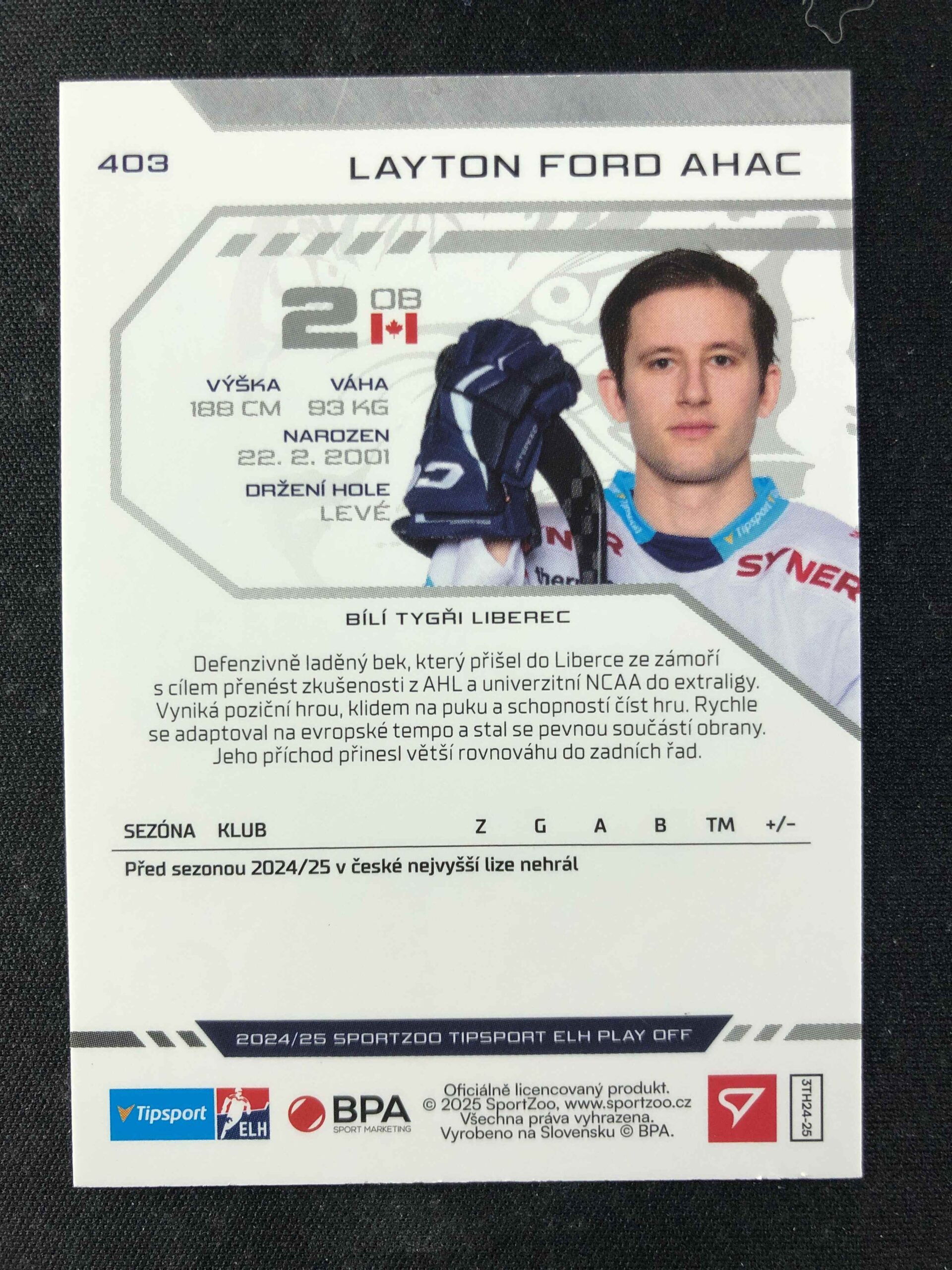 Sběratelská karta 2024/2025 Sportzoo Play Off Green Glitter 403 Layton Ford Ahac Paralel 06/30