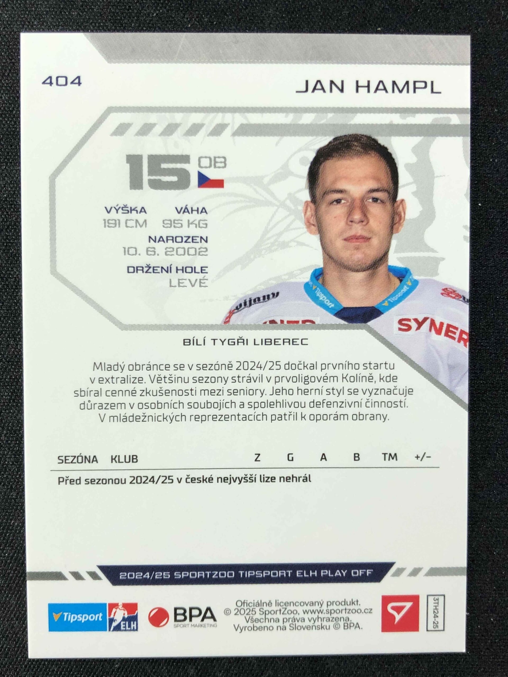 Sběratelská karta 2024/2025 Sportzoo Play Off Green Glitter 404 Jan Hampl Paralel 30/30