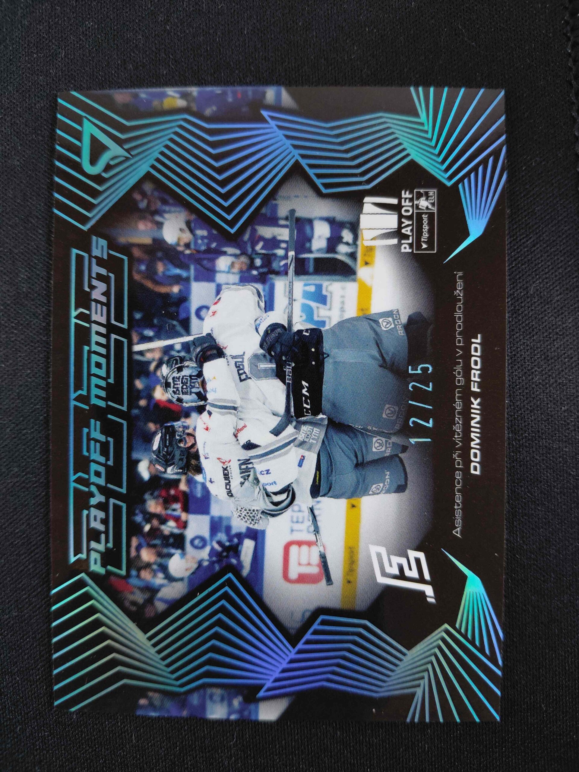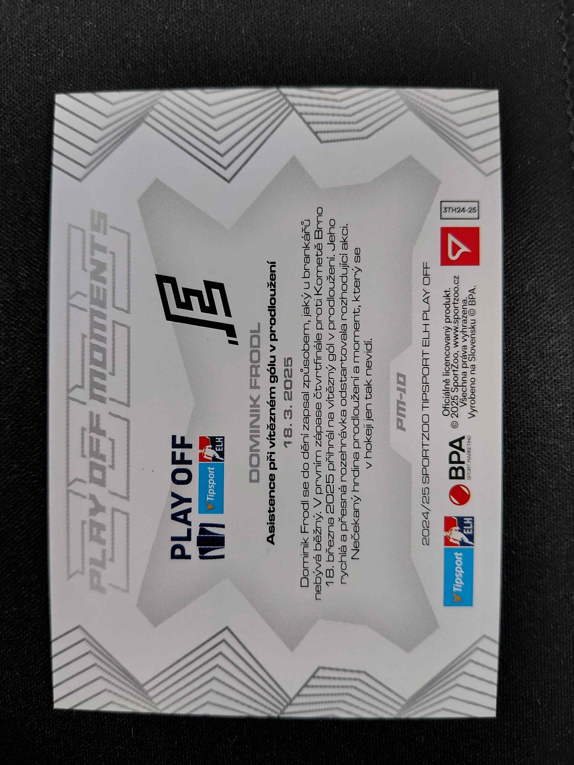 Sběratelská karta 2024/2025 Sportzoo Play Off Play Off Moments Blue PM-10 Dominik Frodl Inzert 12/25
