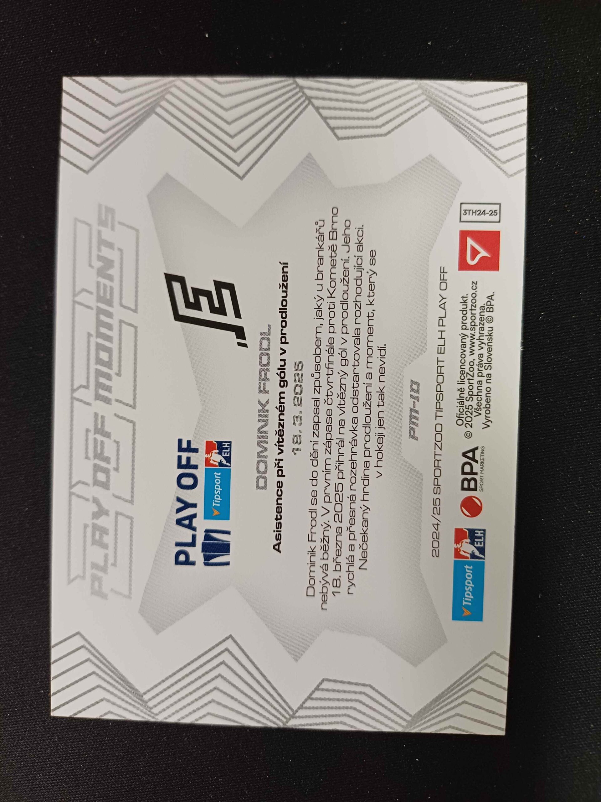 Sběratelská karta 2024/2025 Sportzoo Play Off Play Off Moments PM-10 Dominik Frodl Inzert