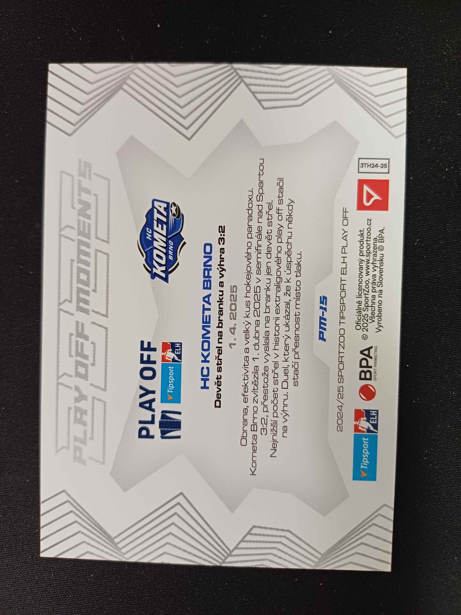 Sběratelská karta 2024/2025 Sportzoo Play Off Play Off Moments PM-15 HC Kometa Brno Inzert