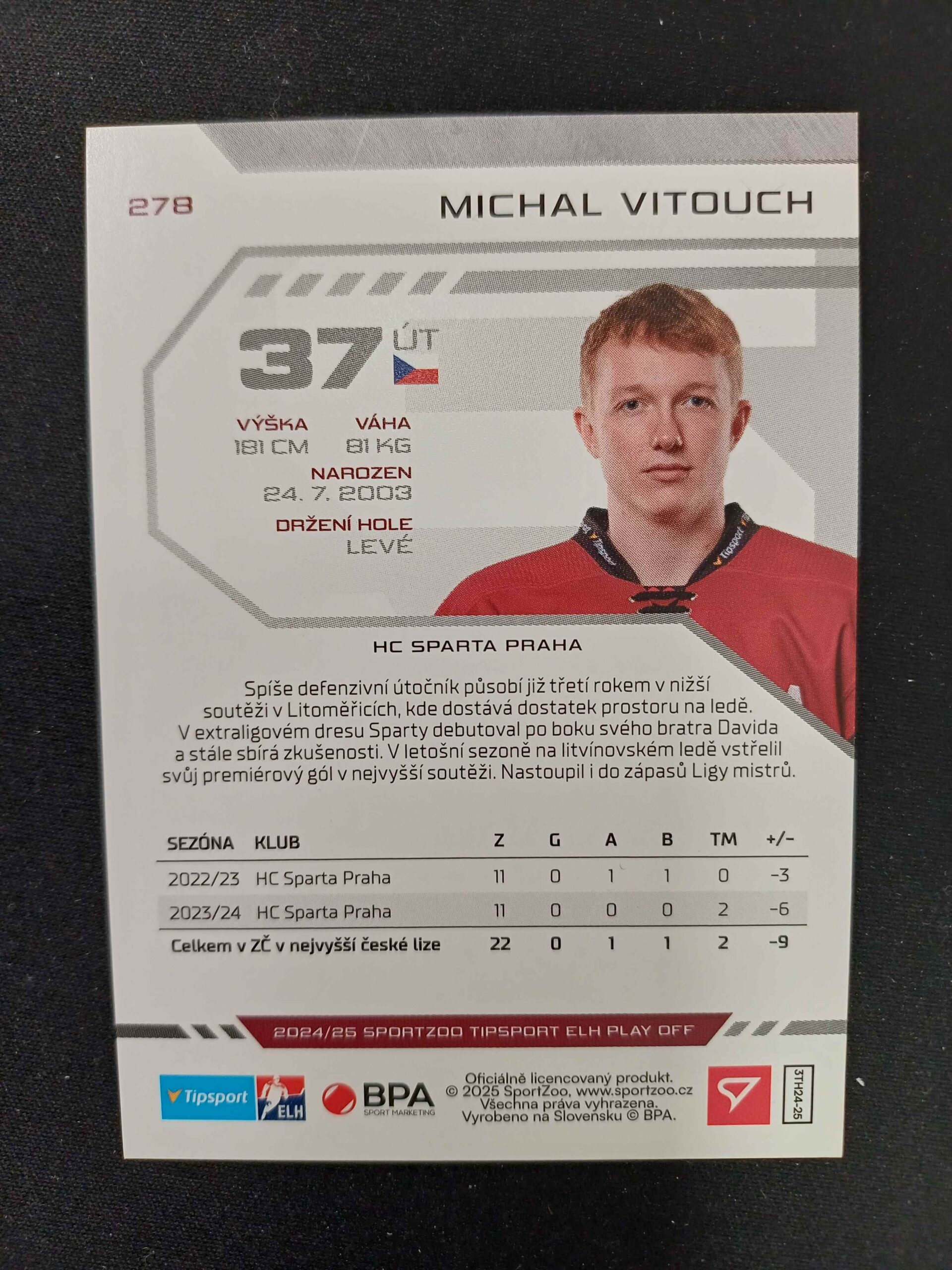 Sběratelská karta 2024/2025 Sportzoo Play Off Puck Marks 278 Michal Vitouch Paralel