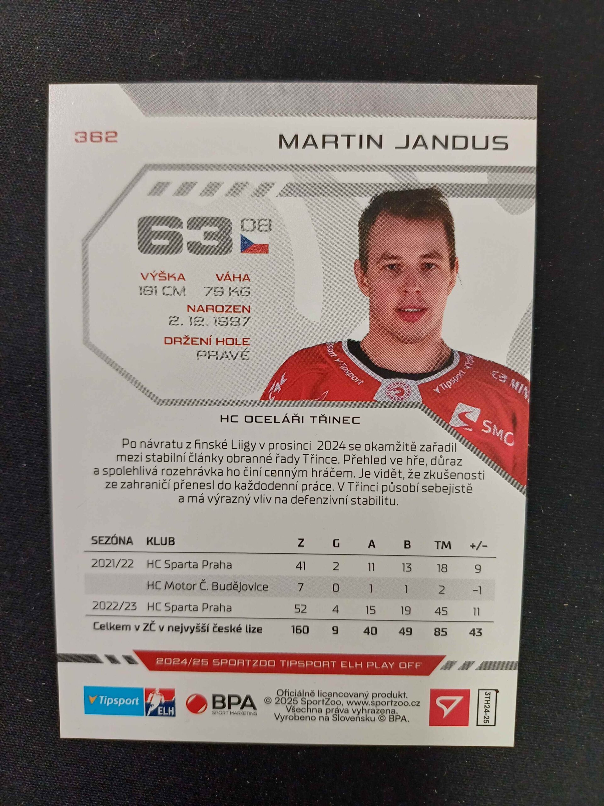 Sběratelská karta 2024/2025 Sportzoo Play Off Puck Marks 362 Martin Jandus Paralel