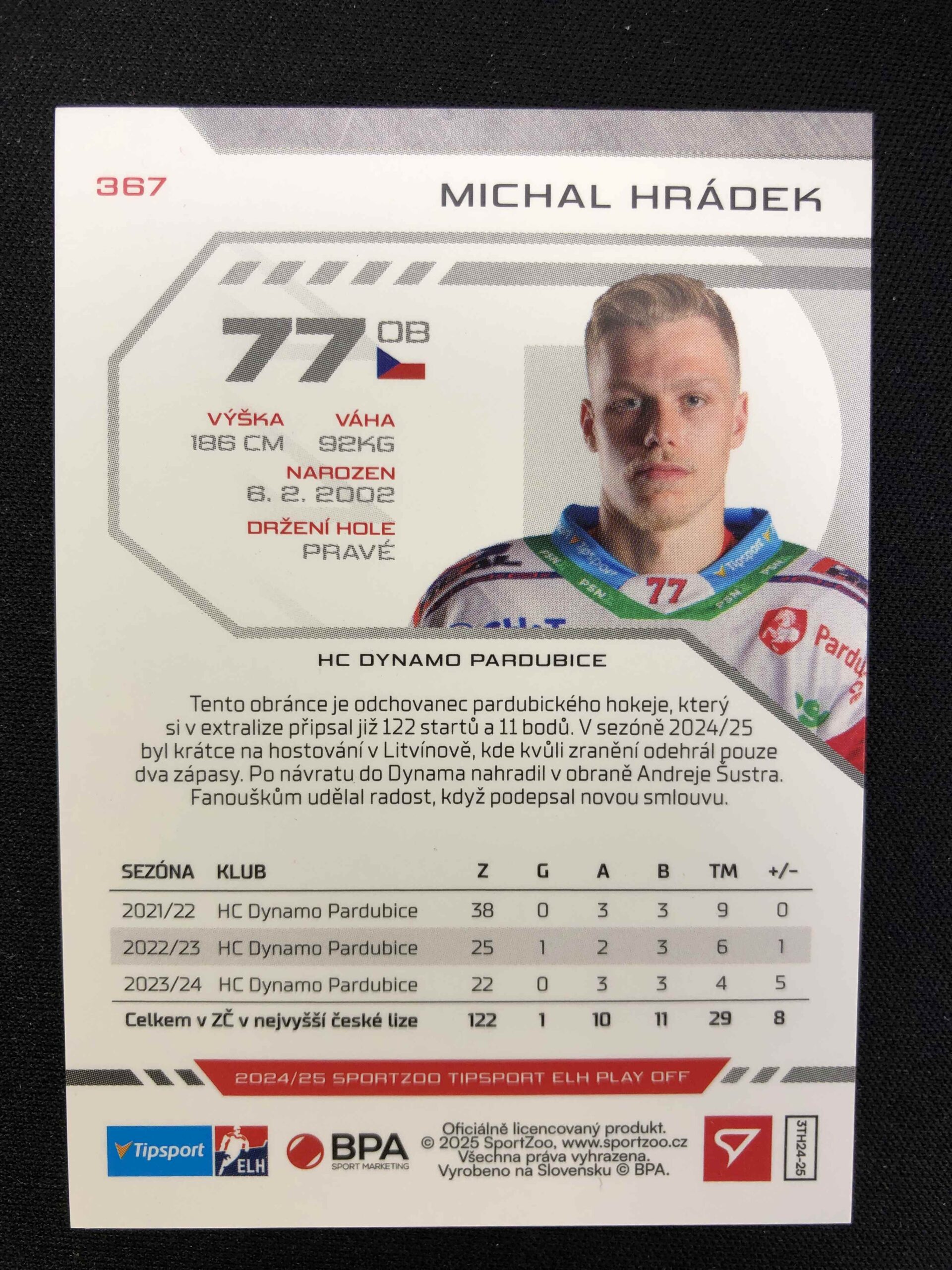 Sběratelská karta 2024/2025 Sportzoo Play Off Puck Marks 367 Michal Hrádek Paralel