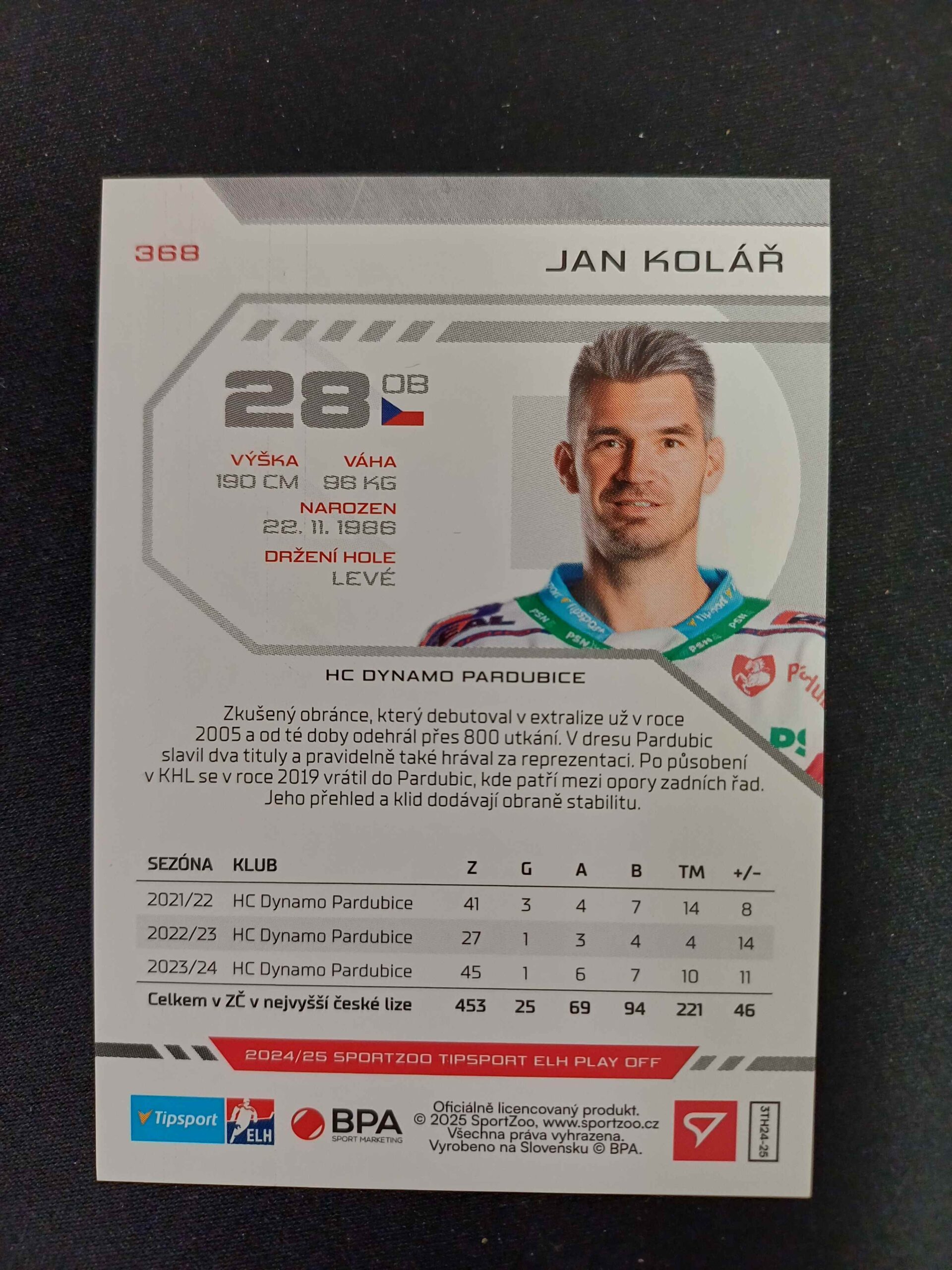 Sběratelská karta 2024/2025 Sportzoo Play Off Puck Marks 368 Jan Kolář Paralel