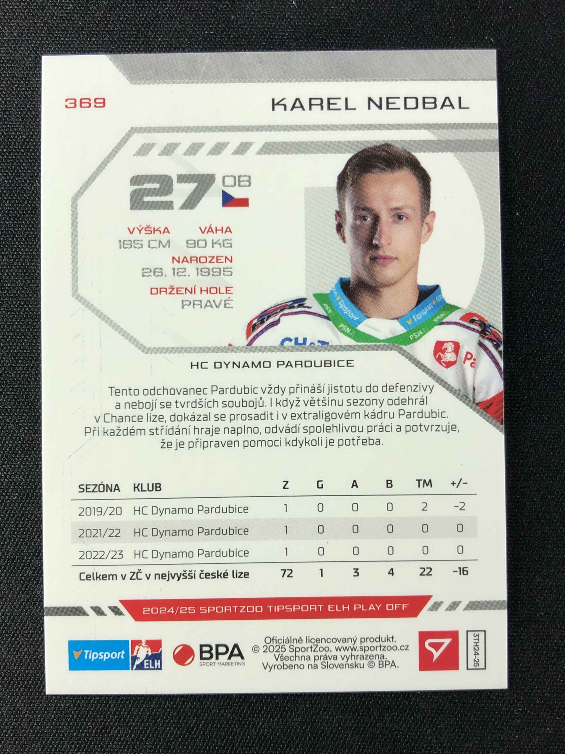 Sběratelská karta 2024/2025 Sportzoo Play Off Puck Marks 369 Karel Nedbal Paralel