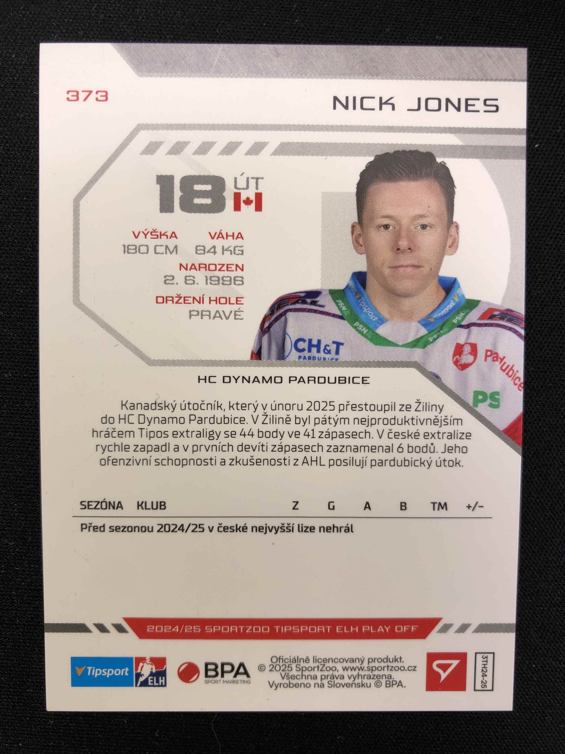 Sběratelská karta 2024/2025 Sportzoo Play Off Puck Marks 373 Nick Jones Paralel