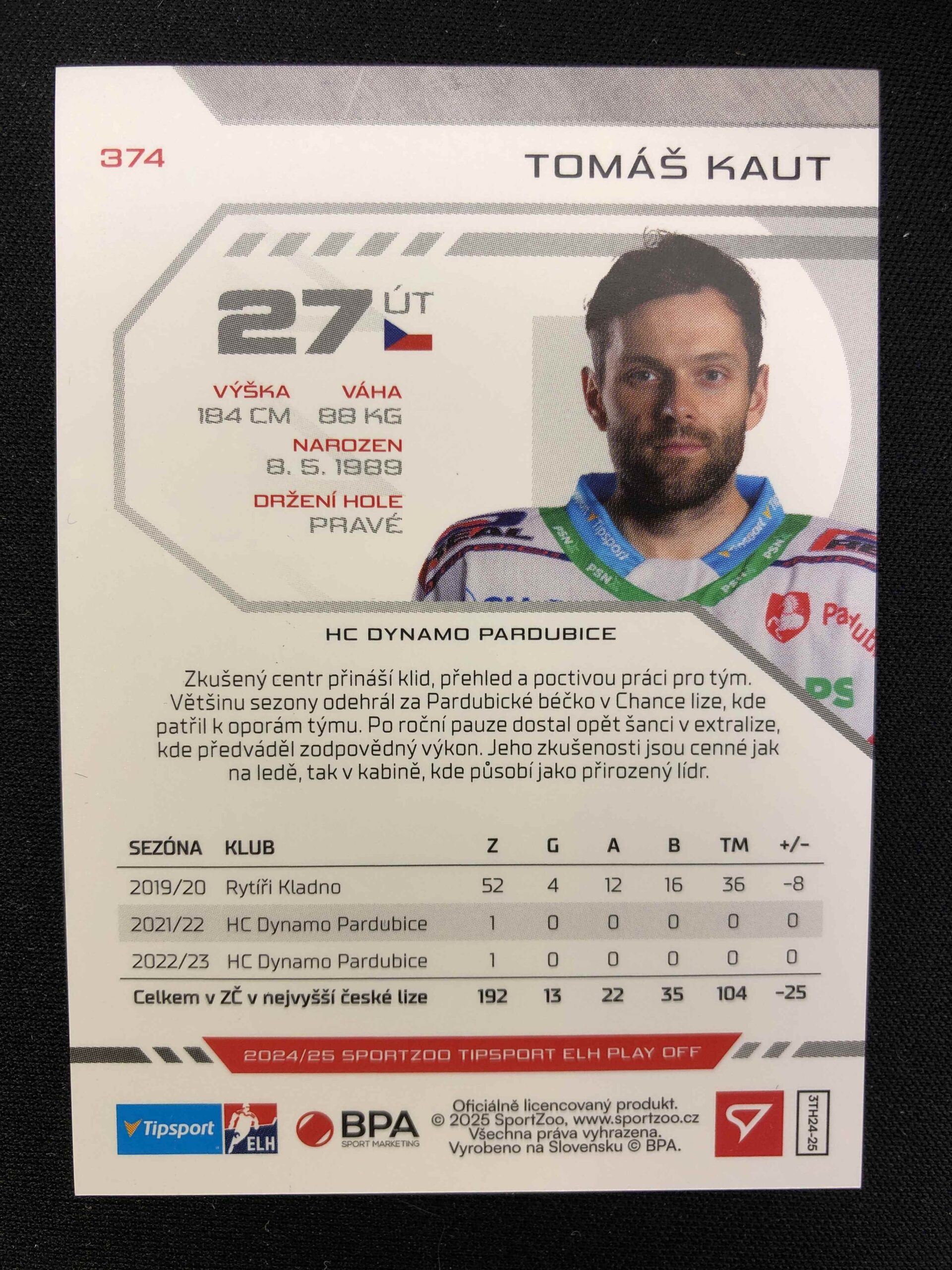 Sběratelská karta 2024/2025 Sportzoo Play Off Puck Marks 374 Tomáš Kaut Paralel