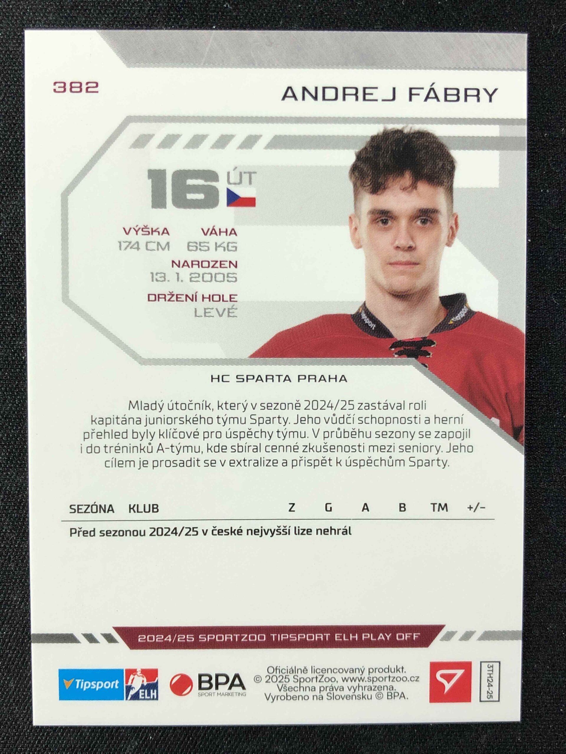 Sběratelská karta 2024/2025 Sportzoo Play Off Puck Marks 382 Andrej Fábry Paralel