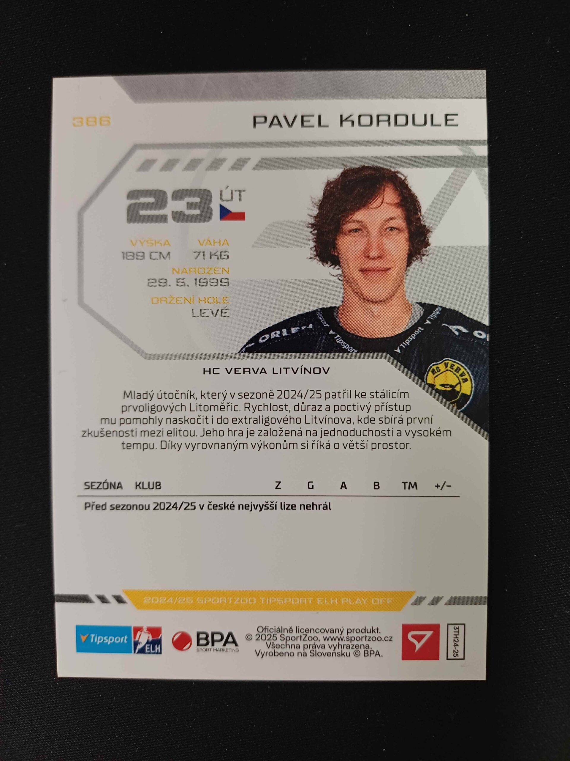 Sběratelská karta 2024/2025 Sportzoo Play Off Puck Marks 386 Pavel Kordule Paralel