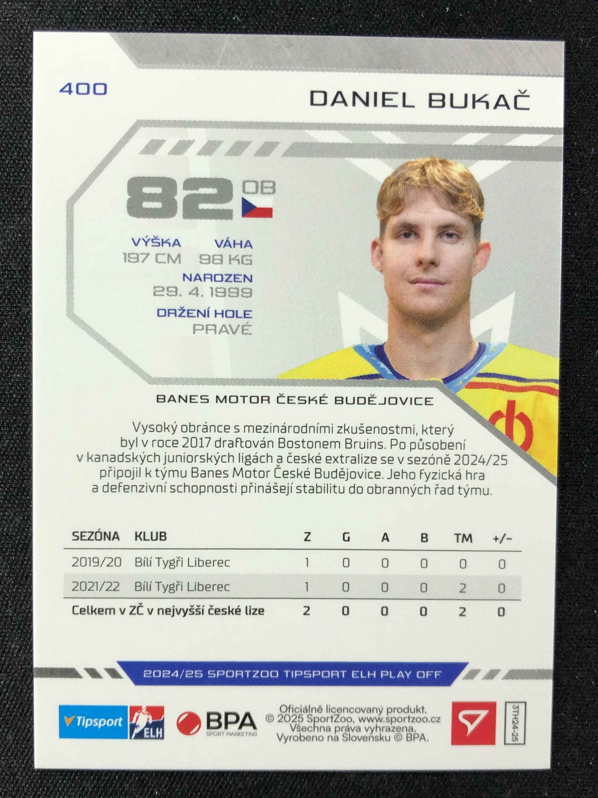 Sběratelská karta 2024/2025 Sportzoo Play Off Puck Marks 400 Daniel Bukač Paralel